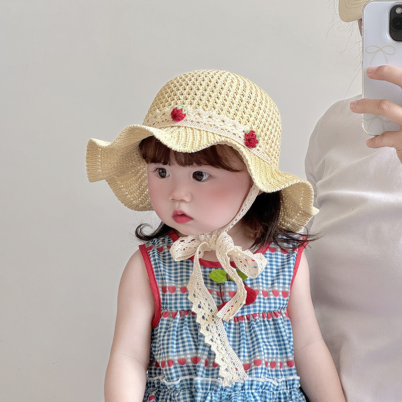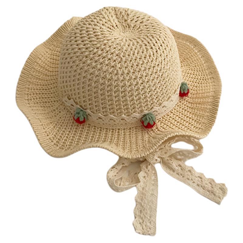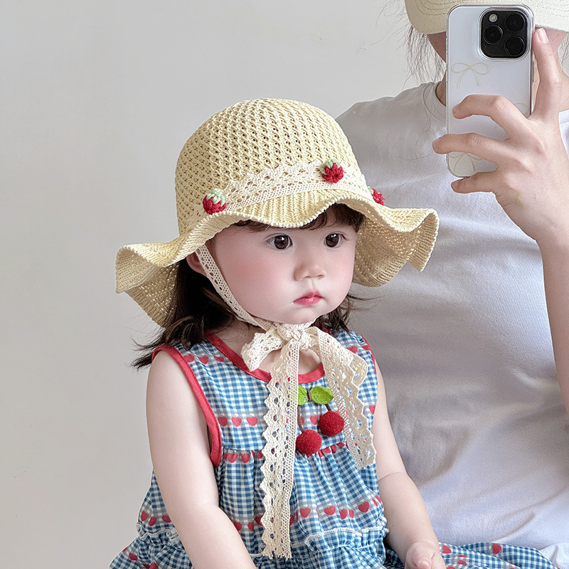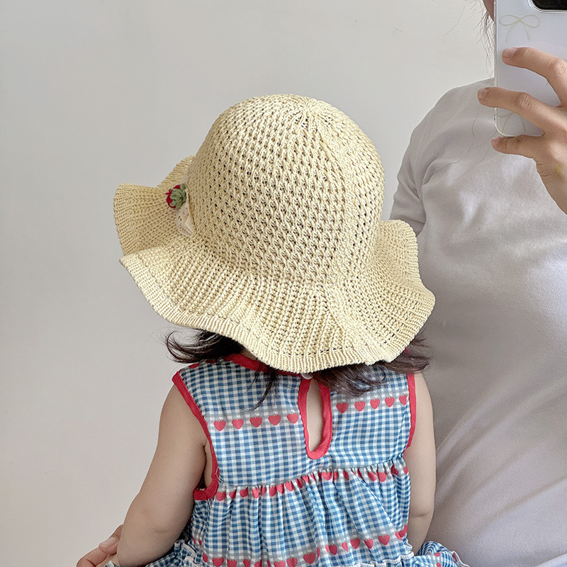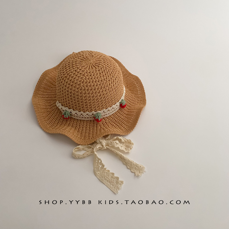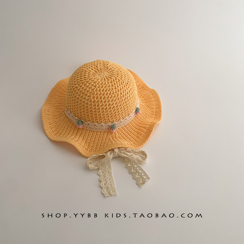 儿童帽子夏季薄款大帽檐编织系带草帽女宝宝出游沙滩防晒太阳帽潮