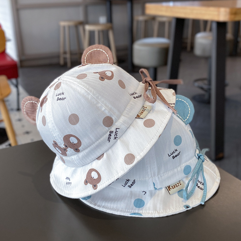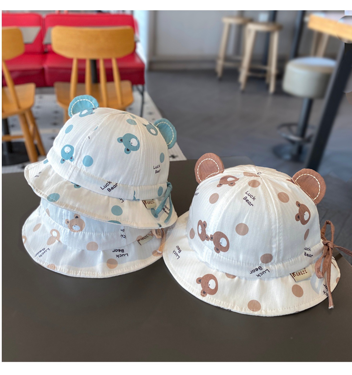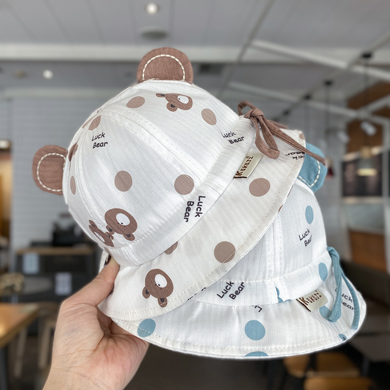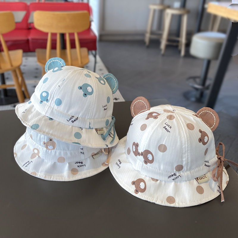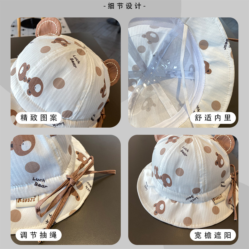 婴儿帽子春秋薄款卡通可爱渔夫帽婴幼儿遮阳防晒可调节宝宝盆帽夏