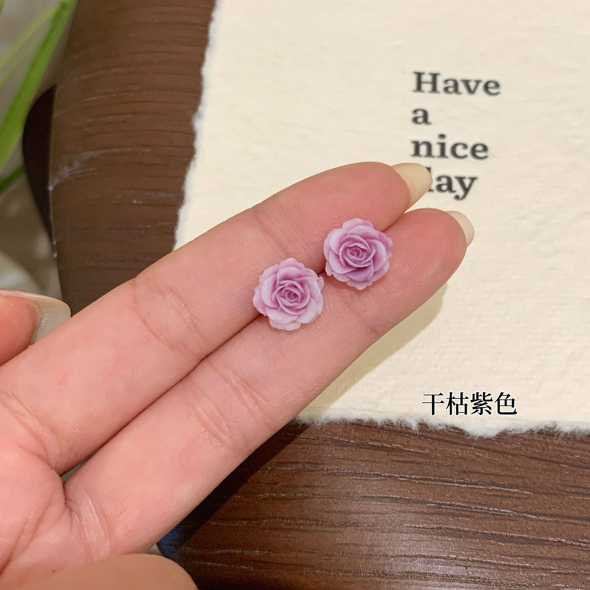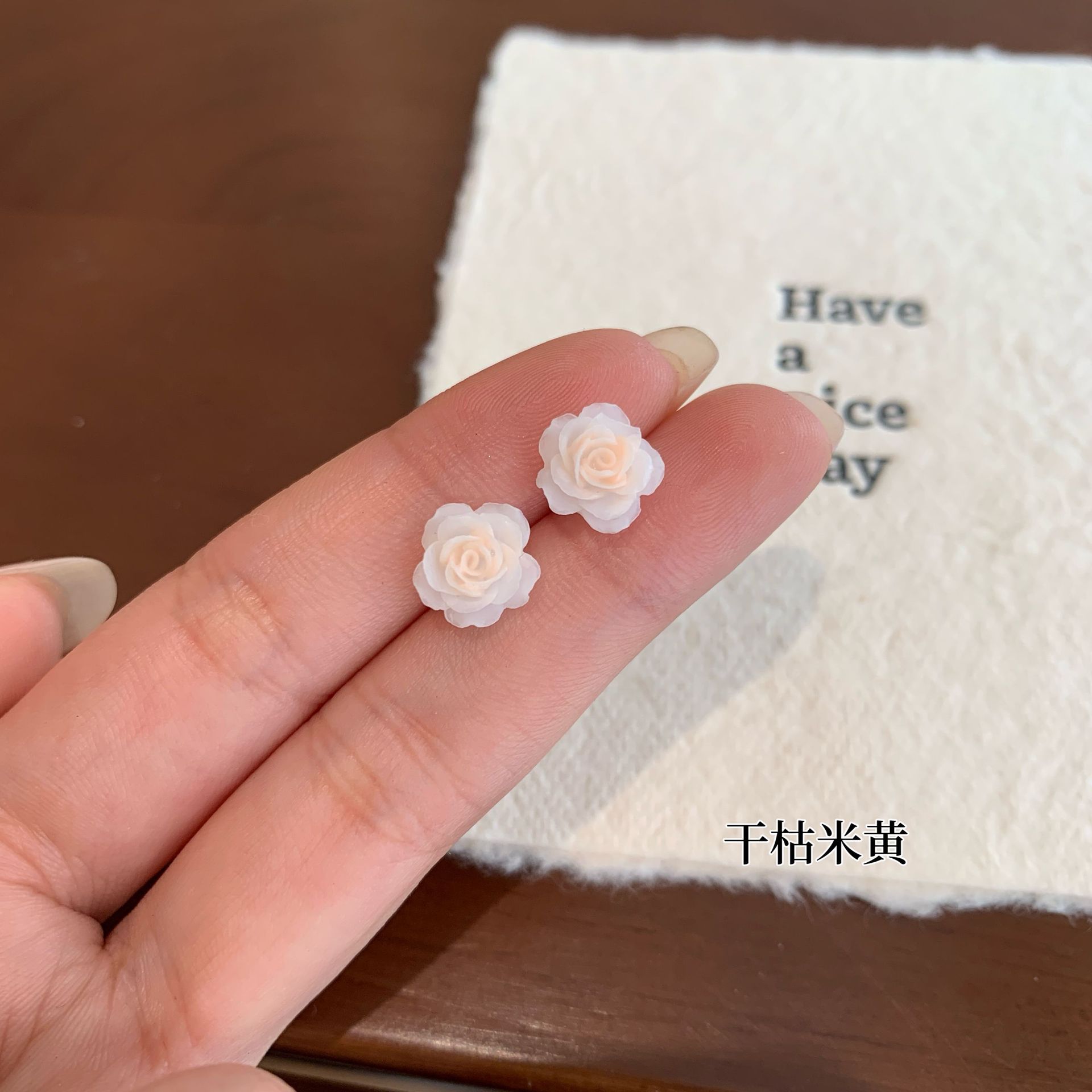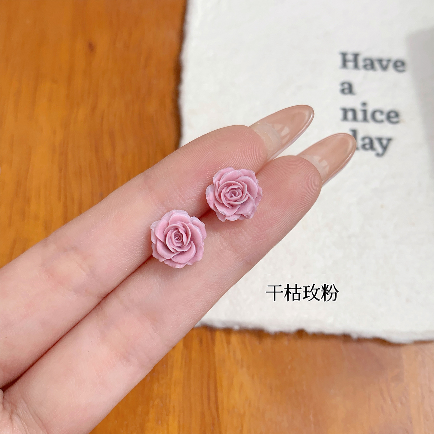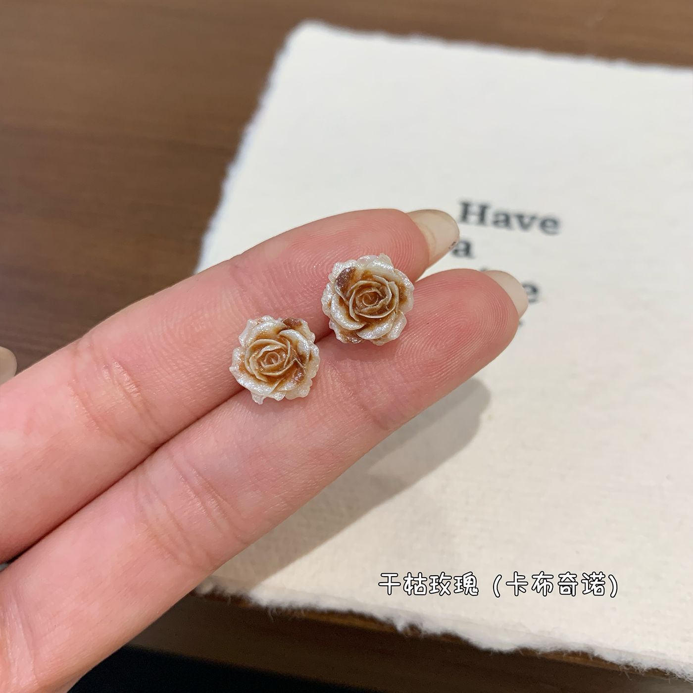 春季新款扎染干枯玫瑰花朵耳钉女银针仙气温柔甜美少女心学生耳饰