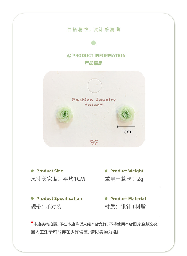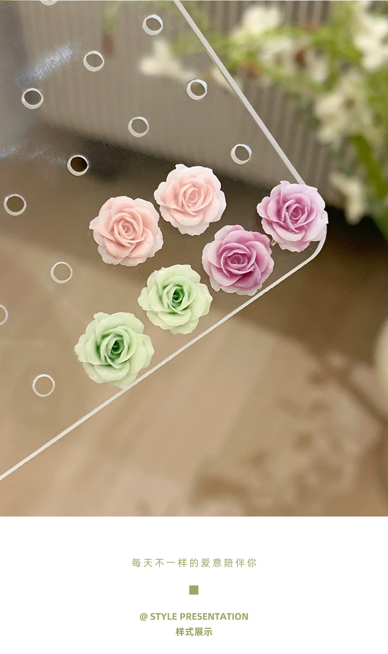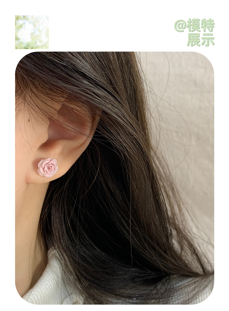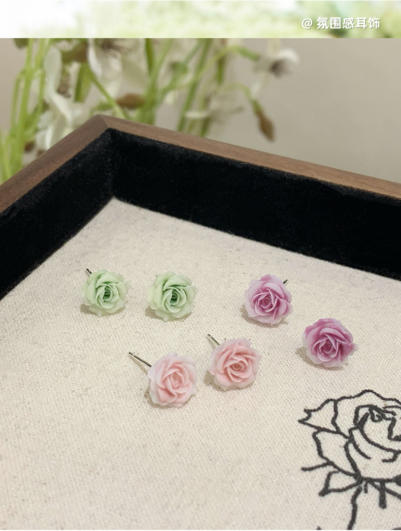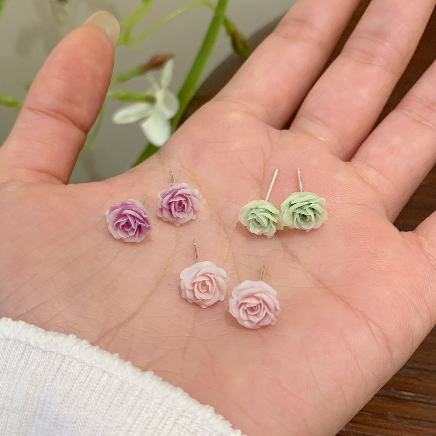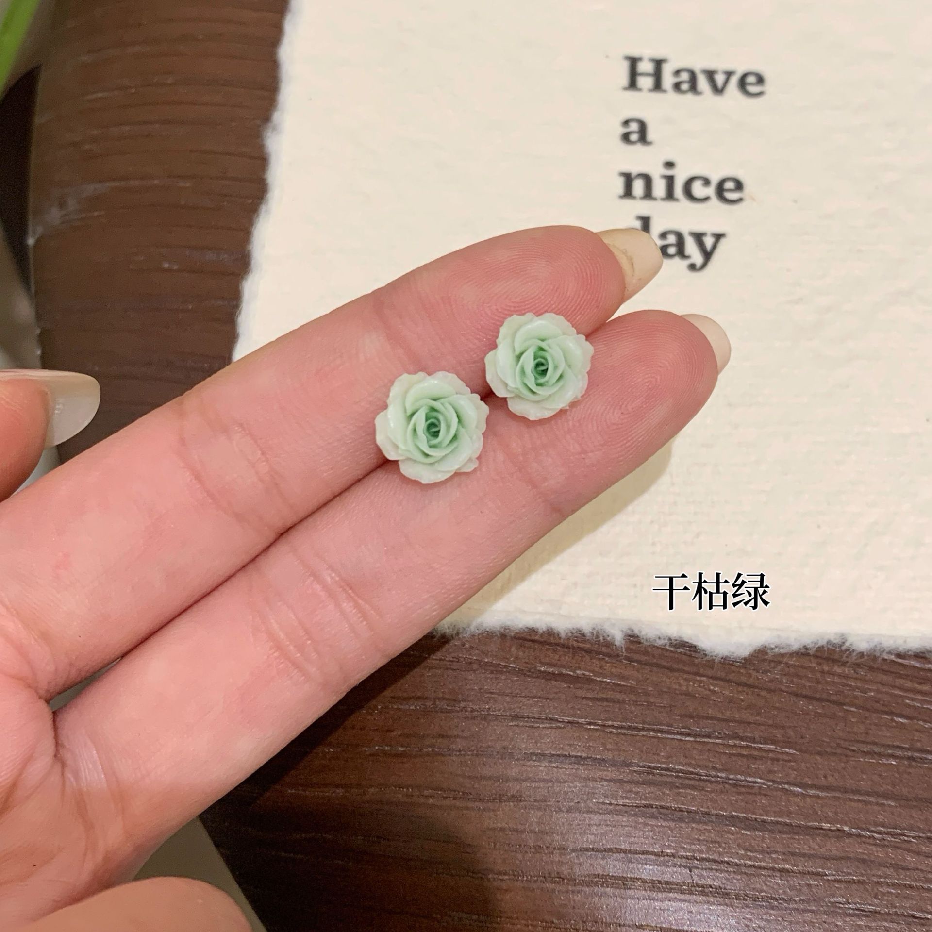 春季新款扎染干枯玫瑰花朵耳钉女银针仙气温柔甜美少女心学生耳饰