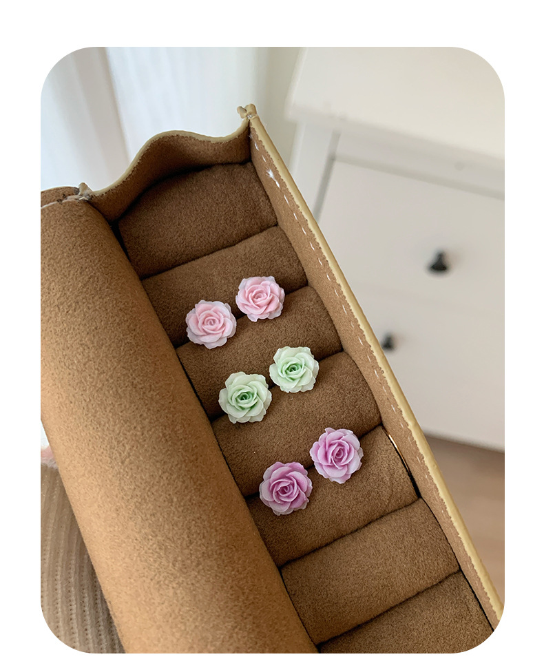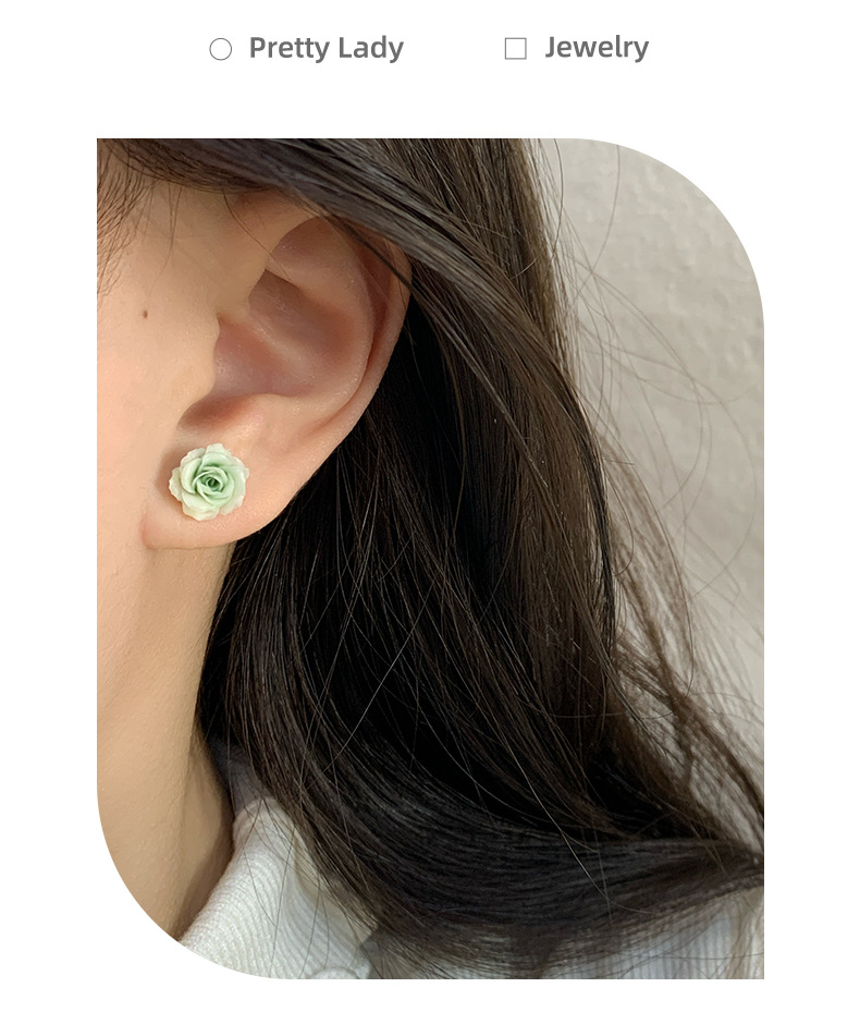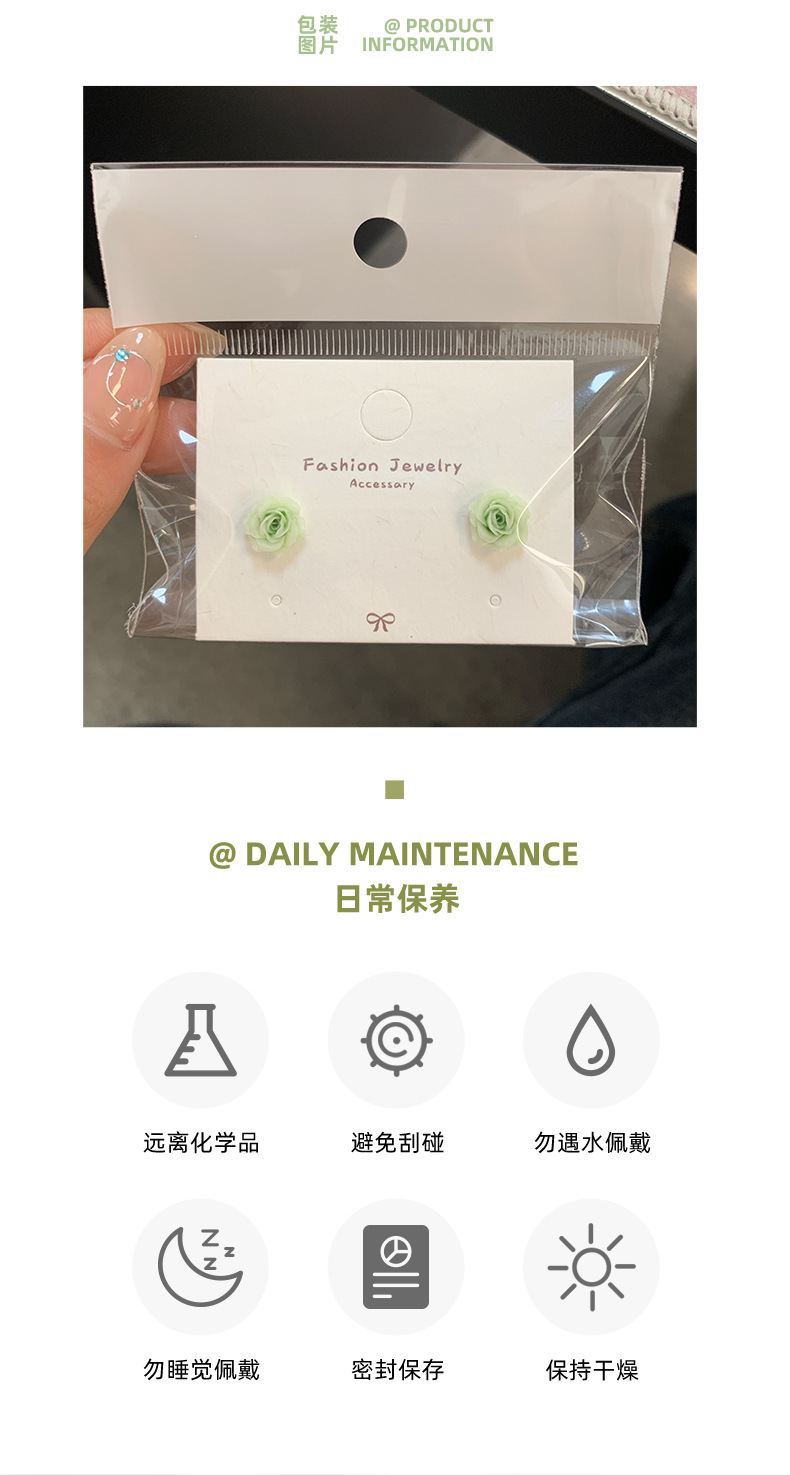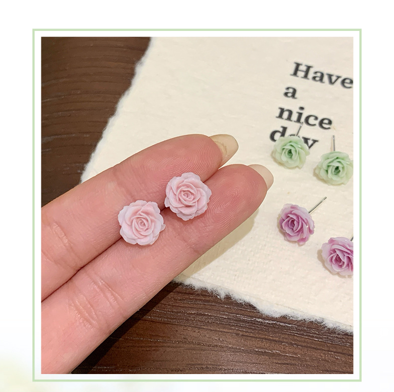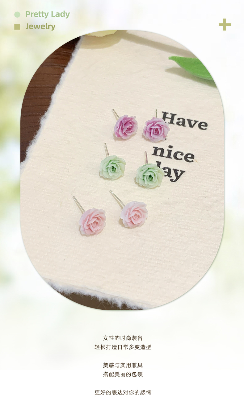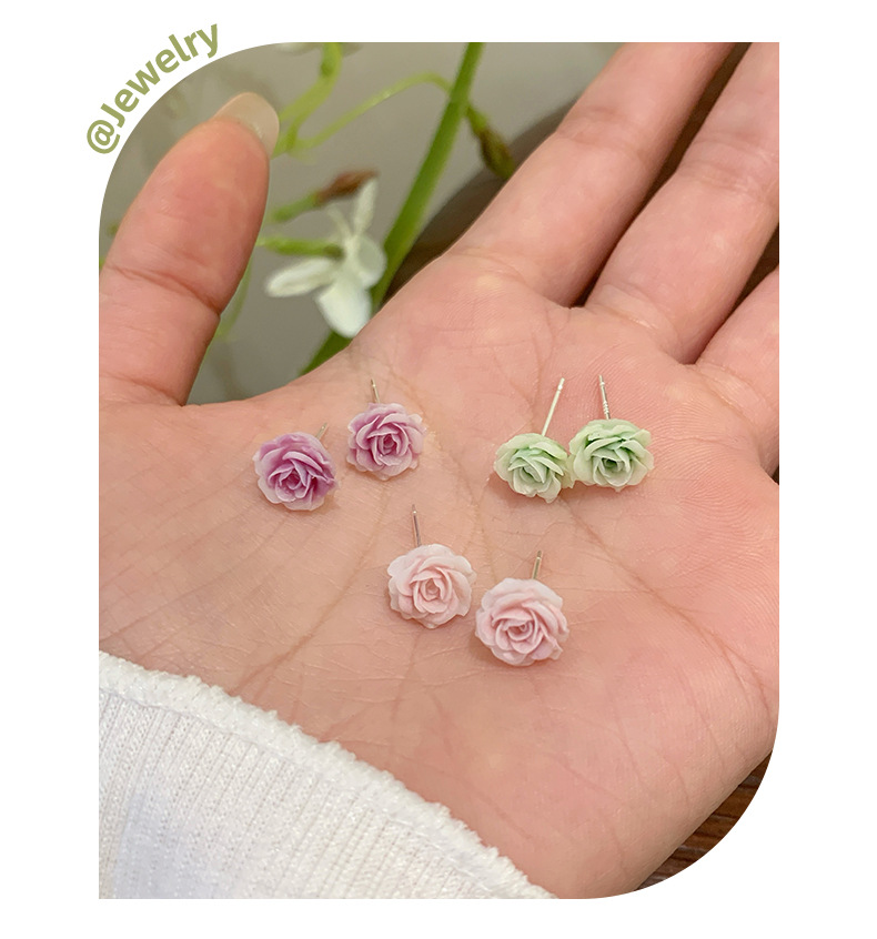春季新款扎染干枯玫瑰花朵耳钉女银针仙气温柔甜美少女心学生耳饰