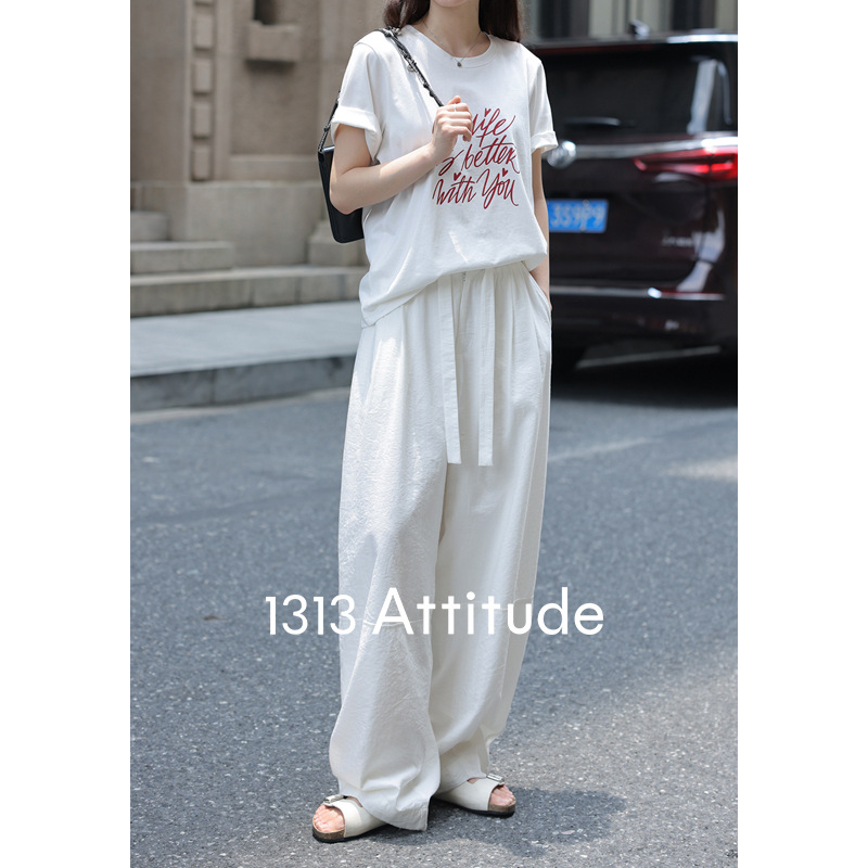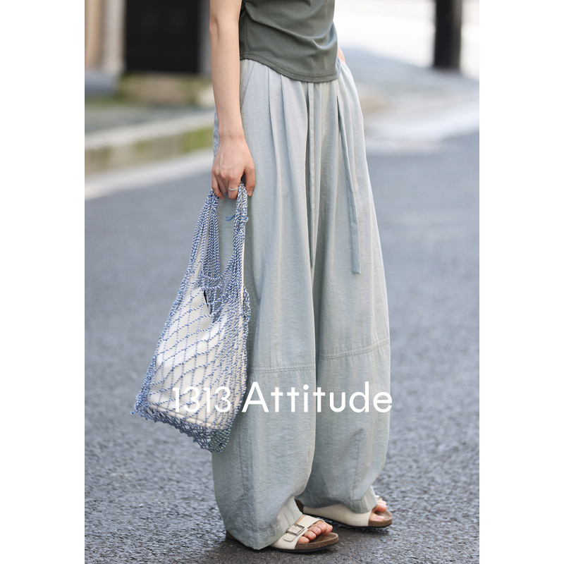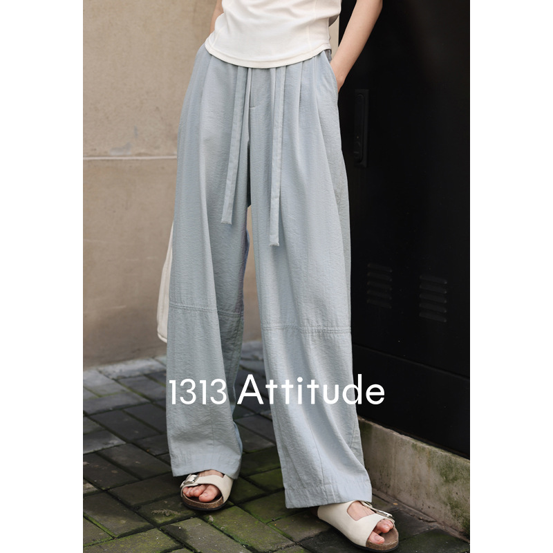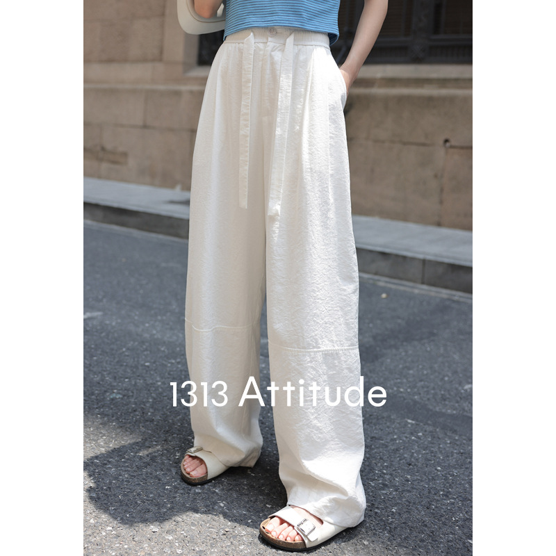 清爽不闷!薄款垂感休闲裤松紧高腰裤子女夏阔腿长裤