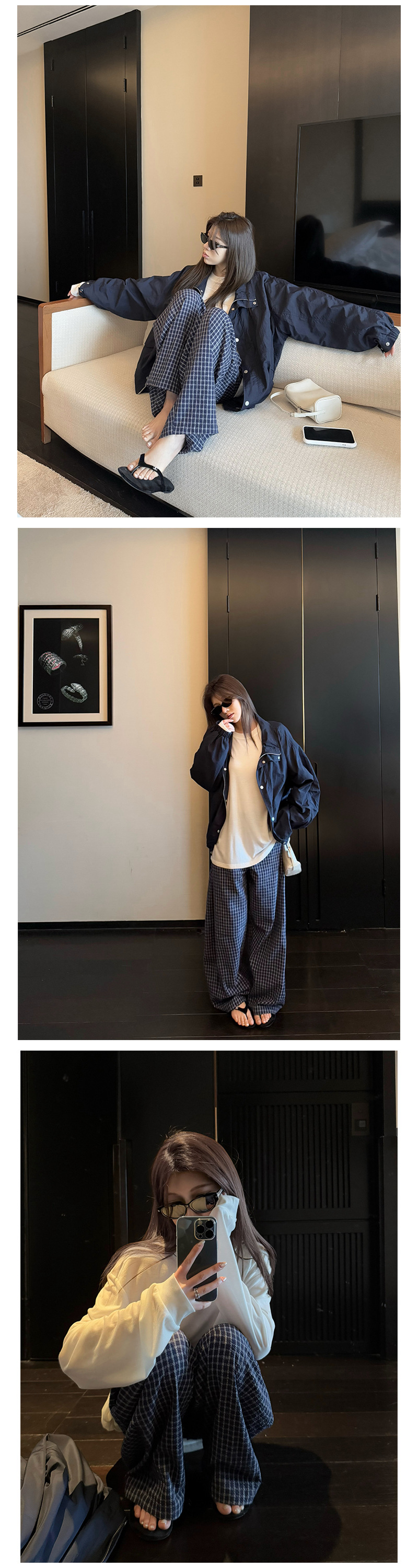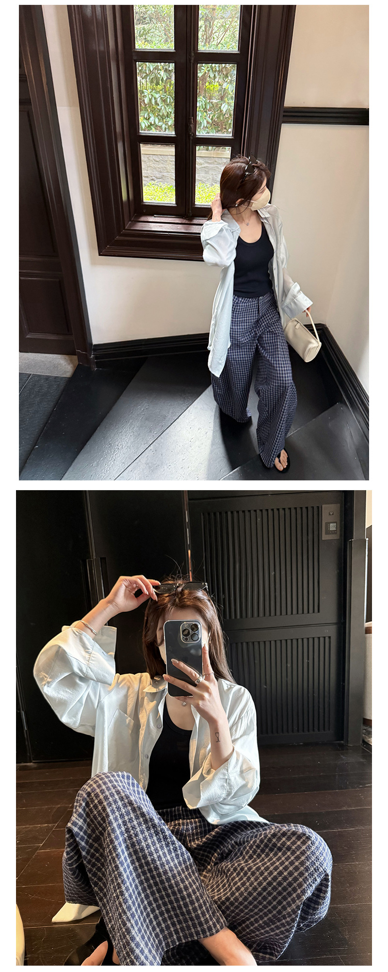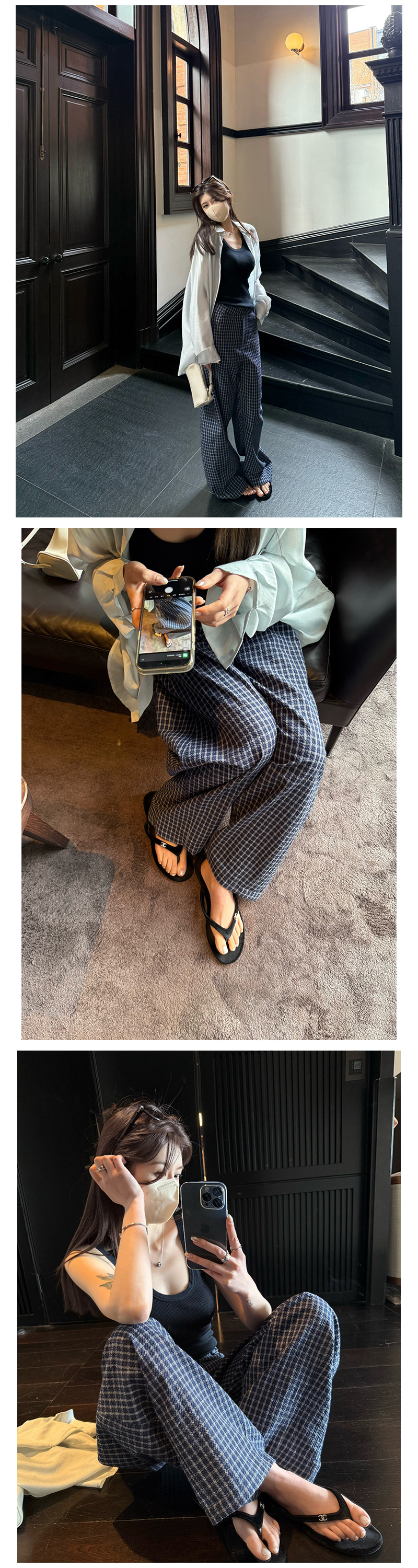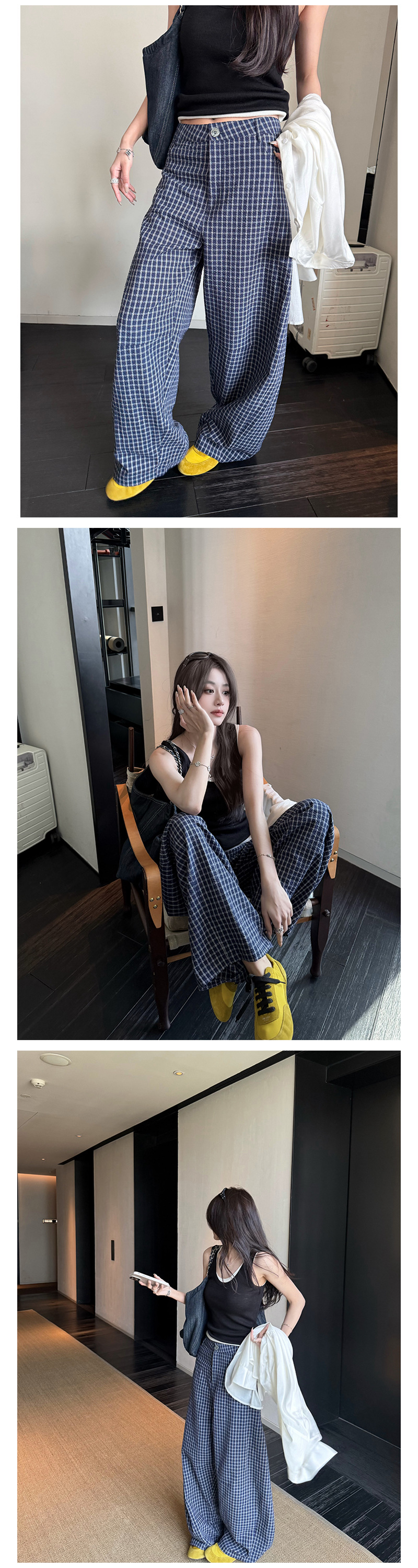 superniniyy 海岛泡泡棉格子裤微皱肌理感宽松镰刀裤休闲裤长裤女
