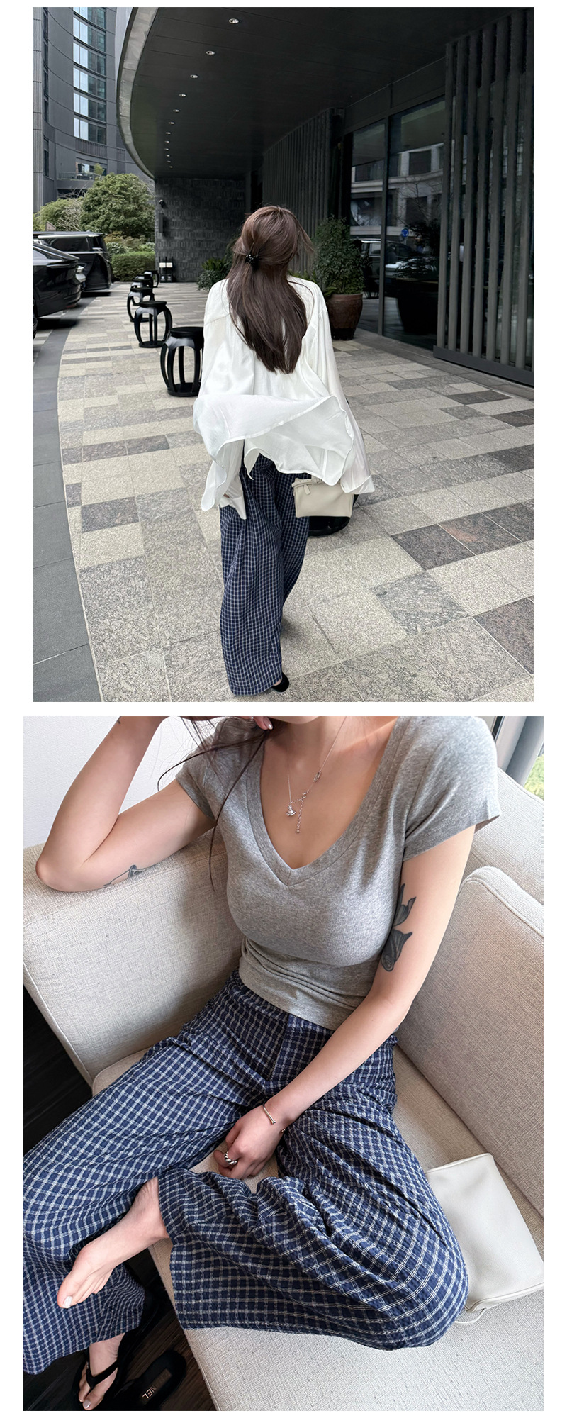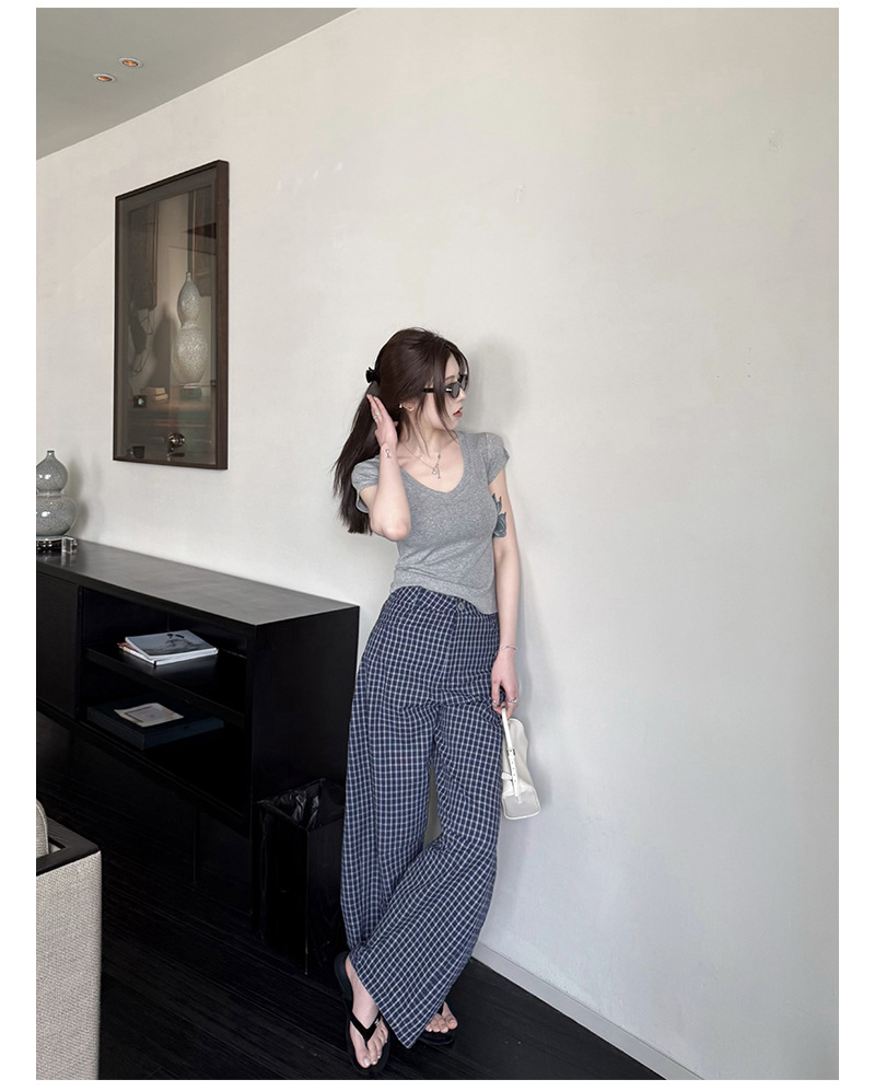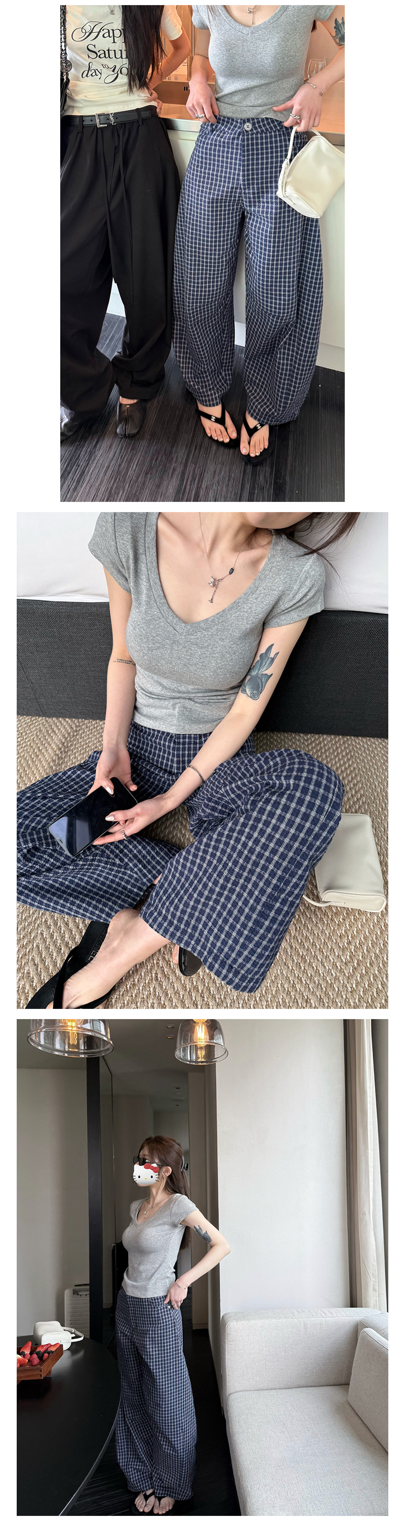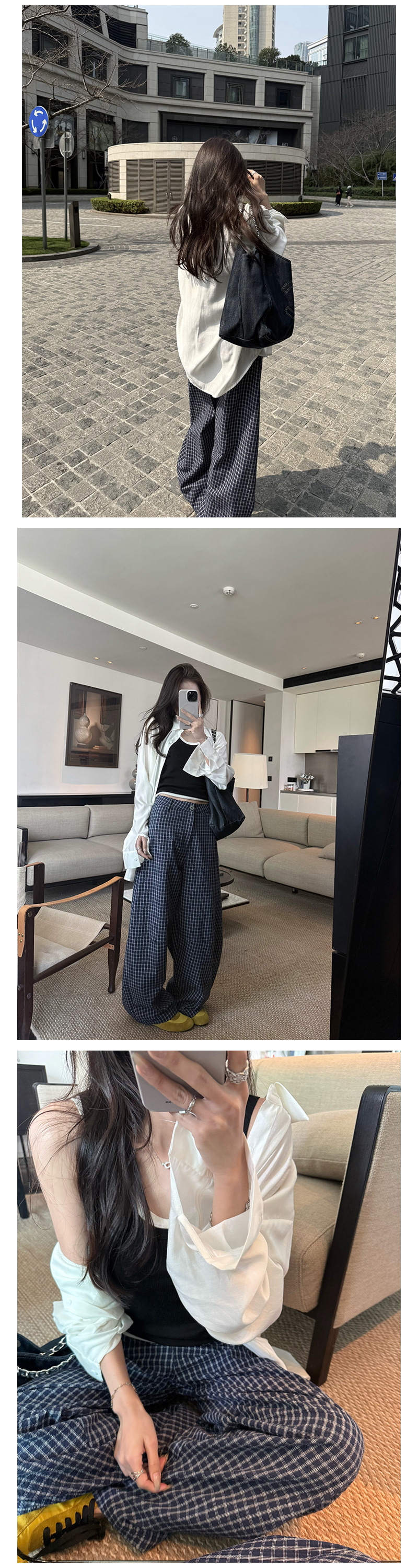 superniniyy 海岛泡泡棉格子裤微皱肌理感宽松镰刀裤休闲裤长裤女