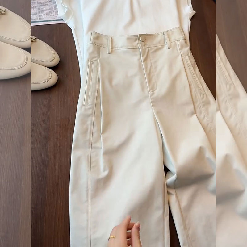 强货赞爆了!米白色高级质感九分休闲裤舒适透气高腰显瘦气球裤女