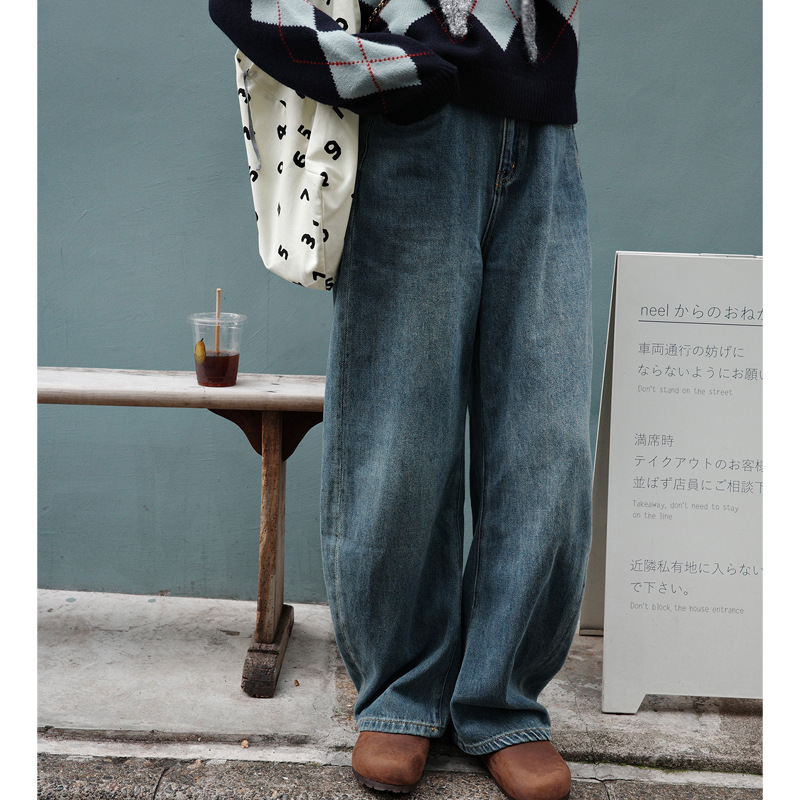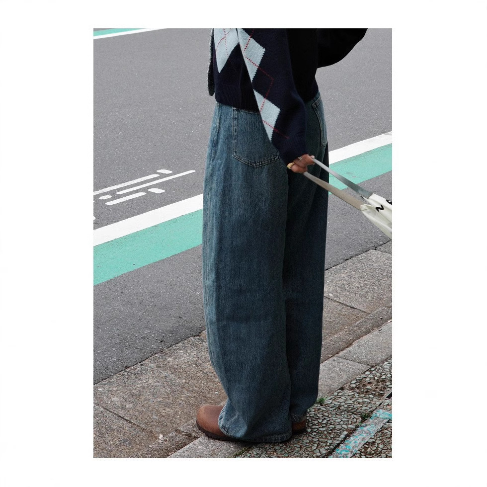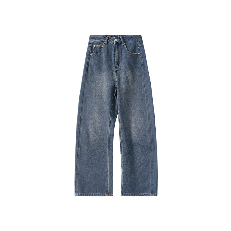 「白描工作间」'360度好版型' bi入中腰水洗蓝宽松直筒弯刀牛仔裤
