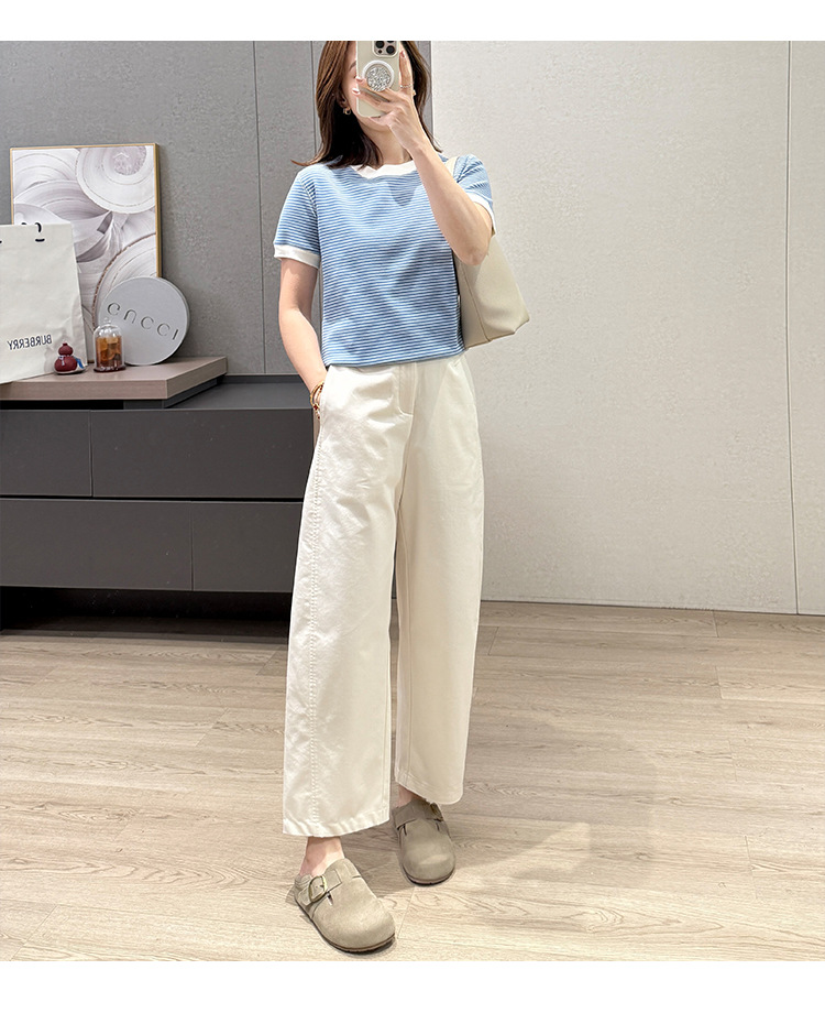靓小靓 神奇遮肚腩!莱赛尔精纺休闲九分裤织带边侧缝前移奶奶裤