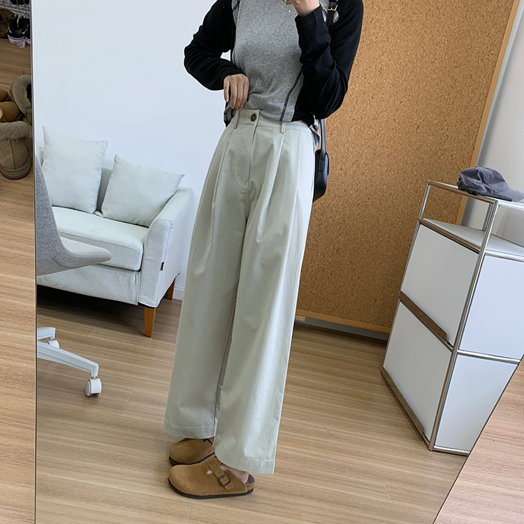 梨形身材B备!高密水洗棉宽松直筒裤春季新款小个子阔腿休闲裤女