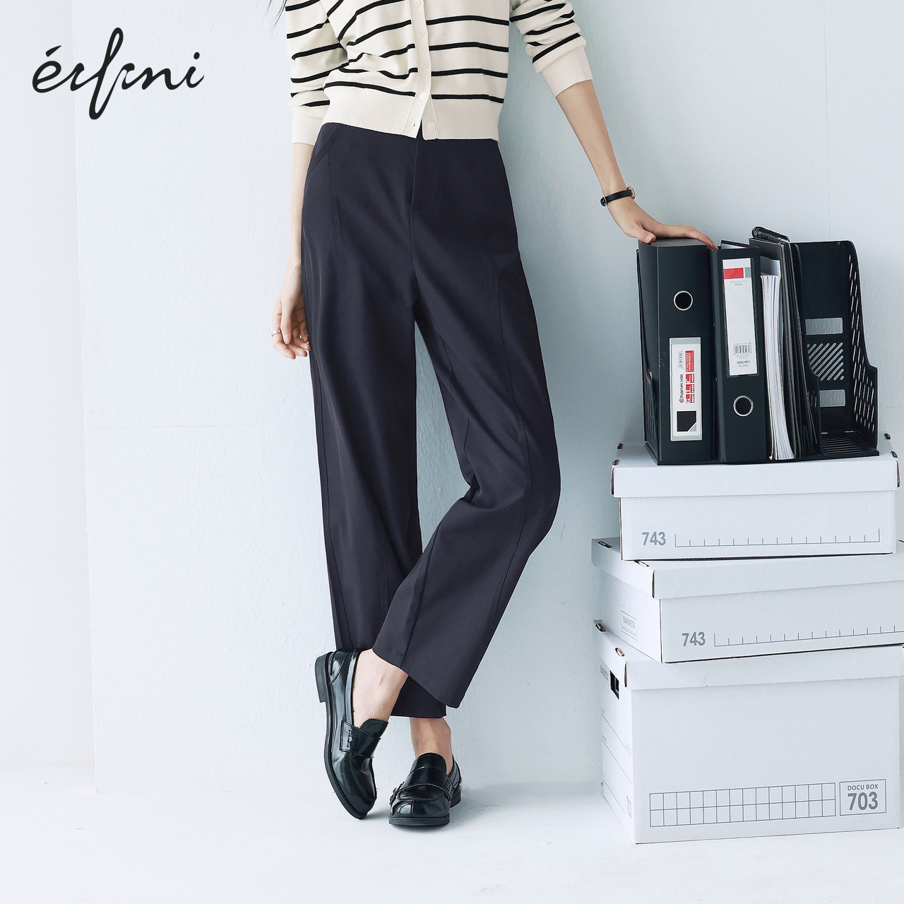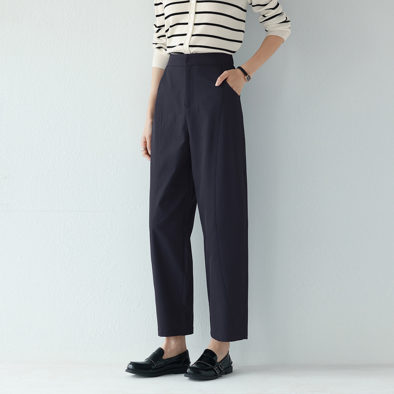 伊芙丽时髦仿棉感抗皱职场九分香蕉裤2025春夏新款百搭显瘦裤子女