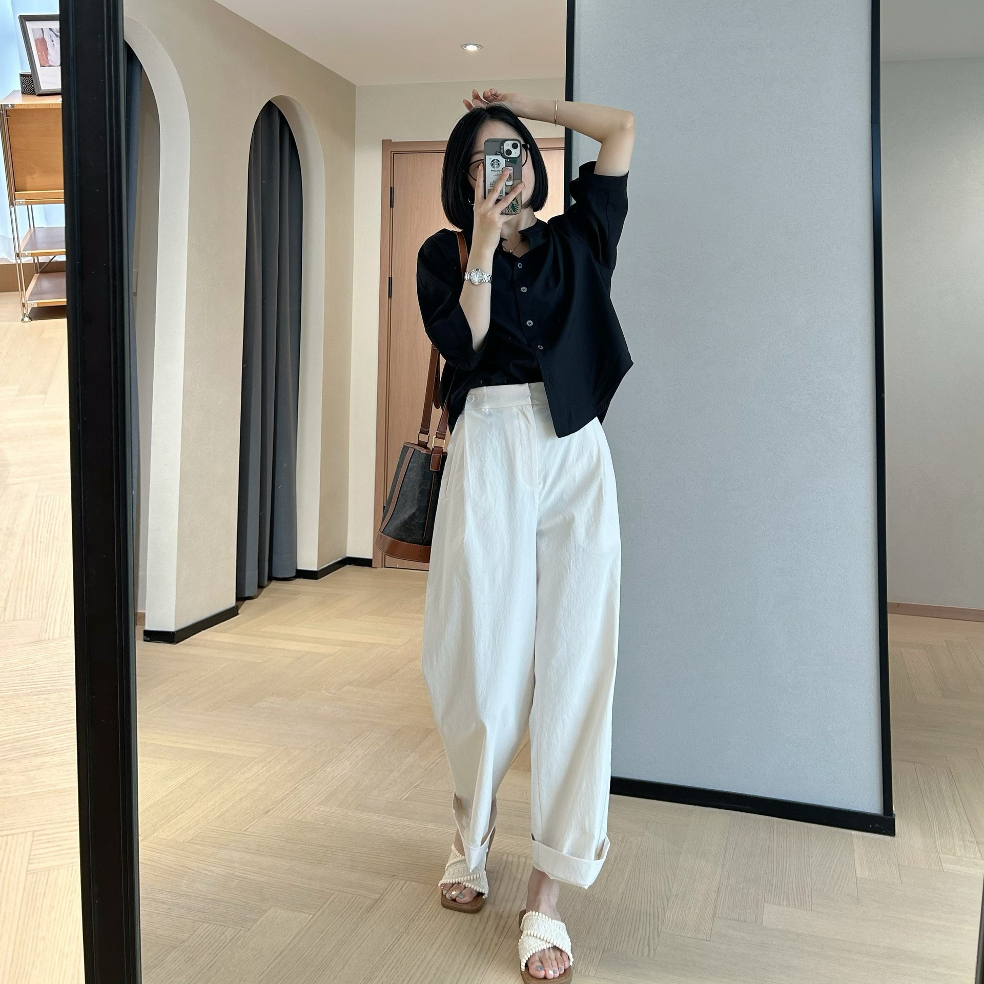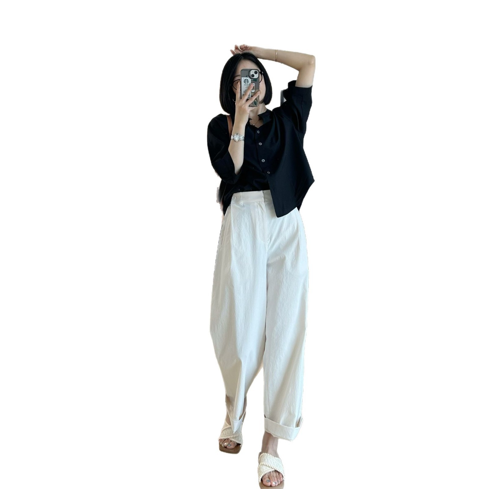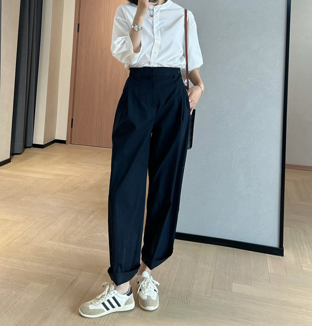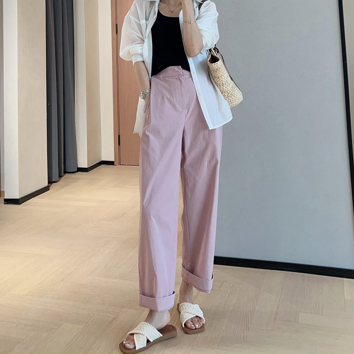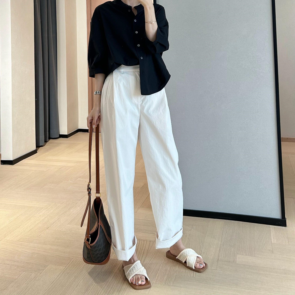 裤腿做了蕞好穿的长度,裤脚正常穿/卷边穿都很ok噢