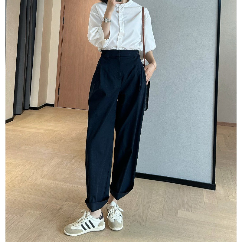 jin口超态棉微皱纸感遮胯直筒休闲裤!