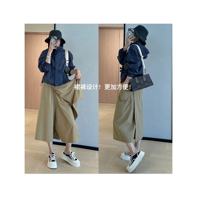 兼顾了A字伞裙的清新飘逸和裤子的方便利落