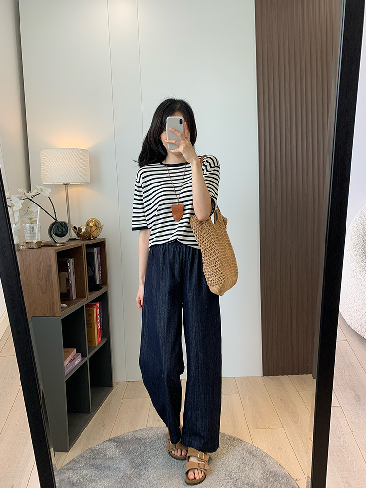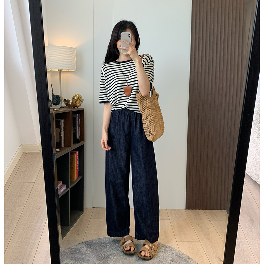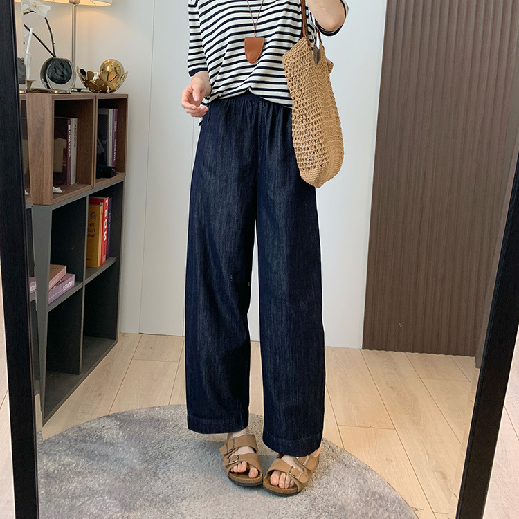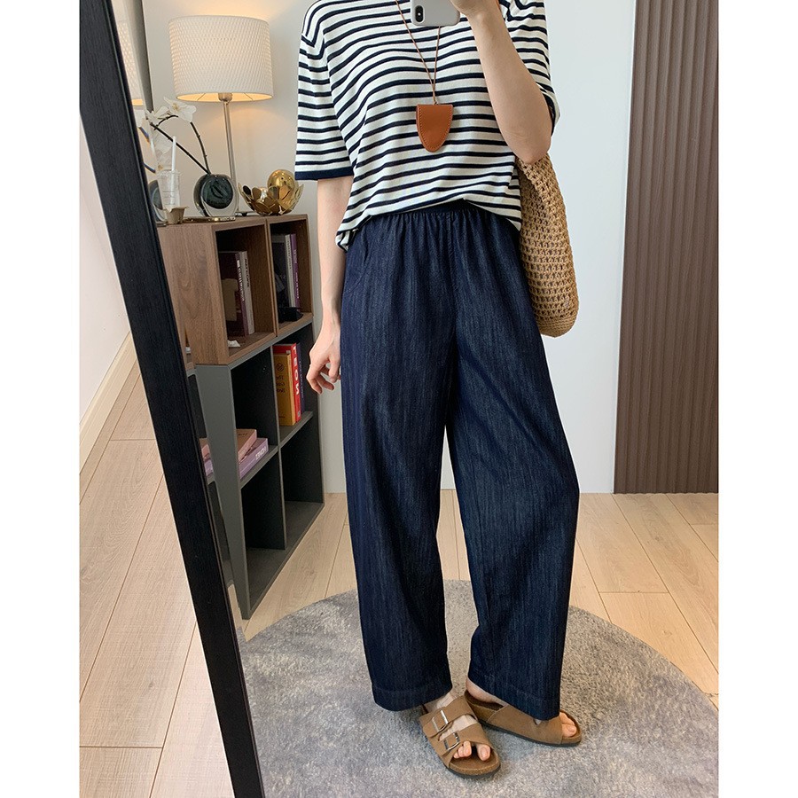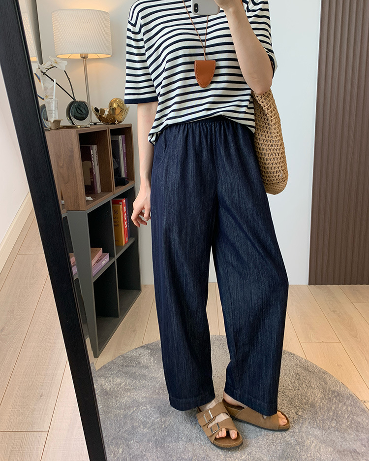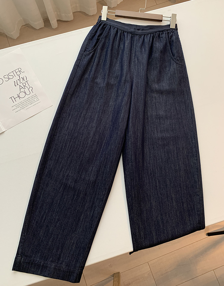 天丝+棉麻,薄款牛仔裤,弧形阔腿休闲裤