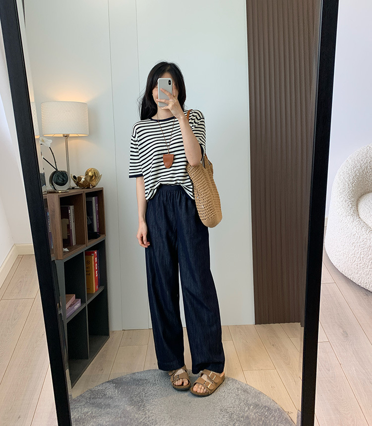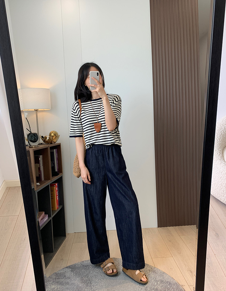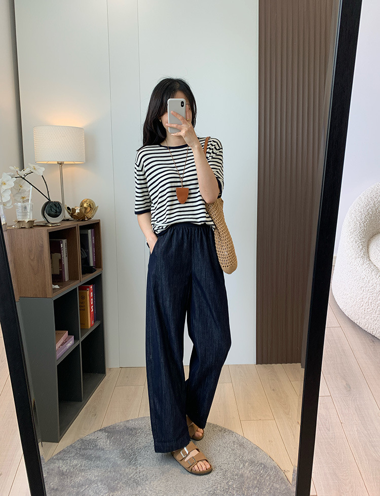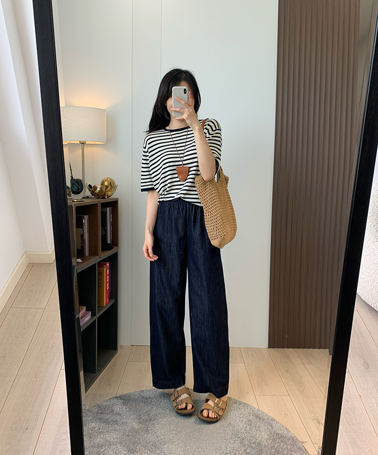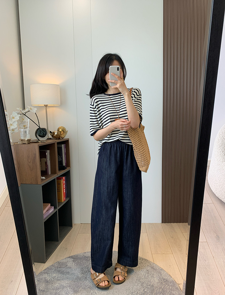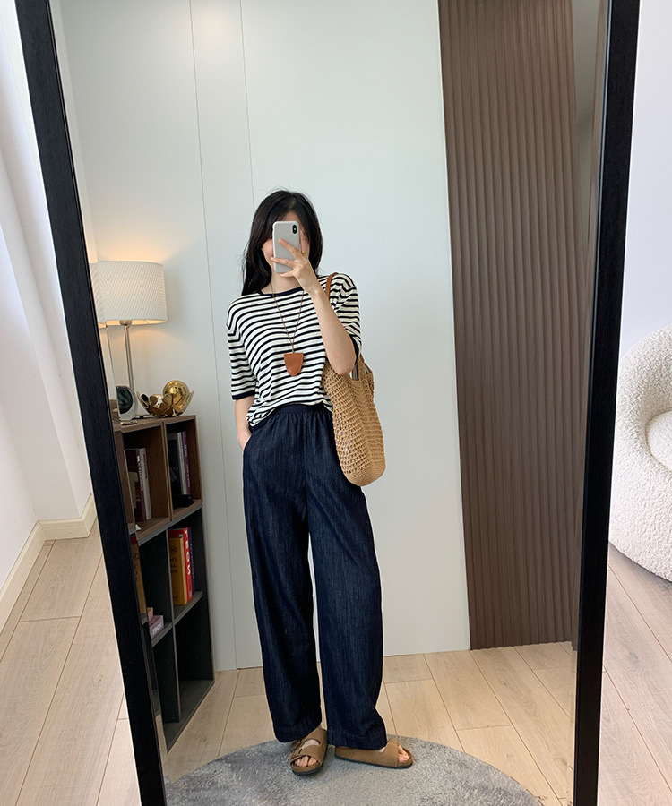 天丝+棉麻,薄款牛仔裤,弧形阔腿休闲裤