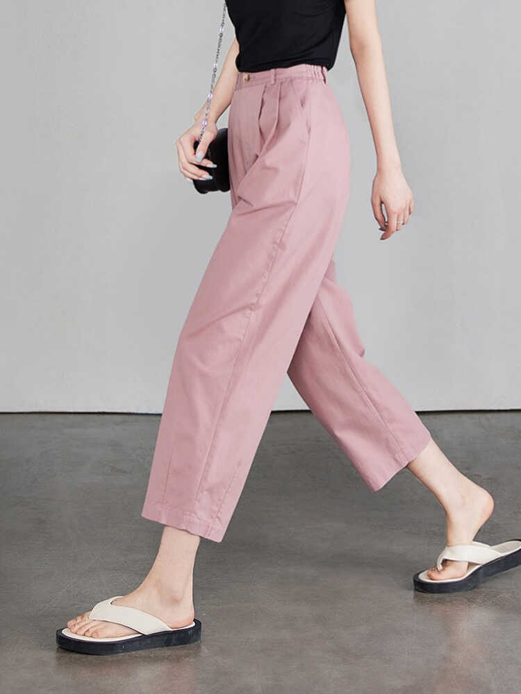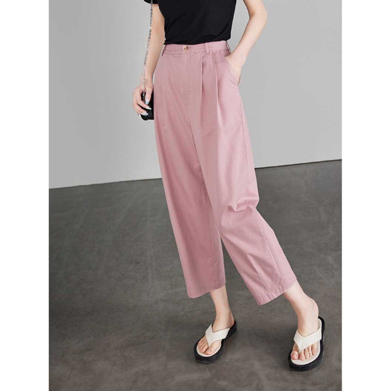 减龄镰刀裤女高腰显瘦好搭九分裤休闲裤子日系专柜外贸出口粉色