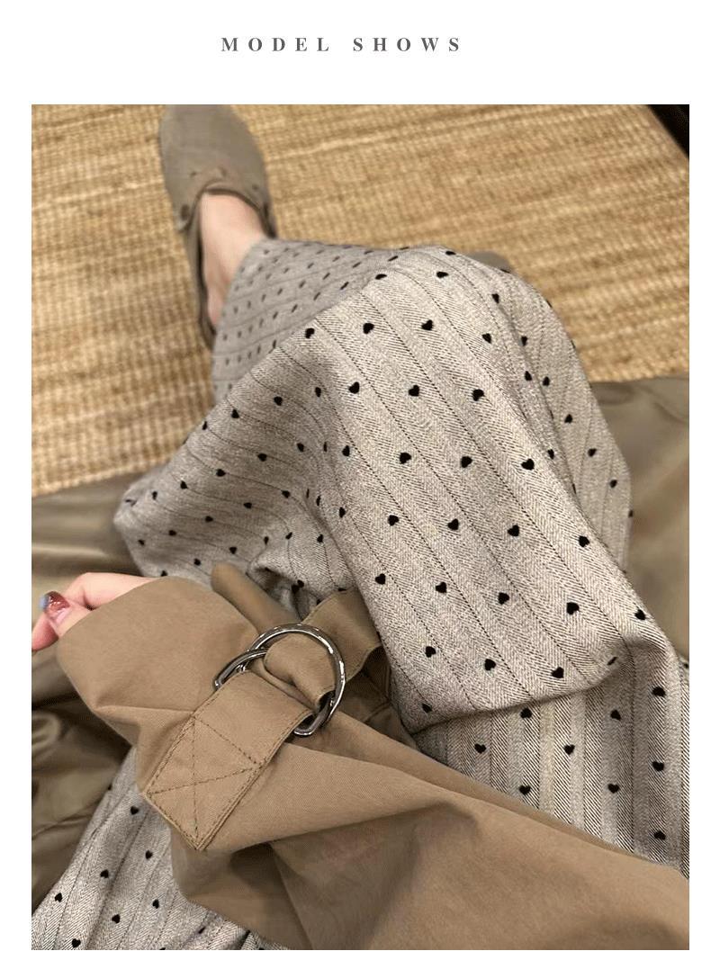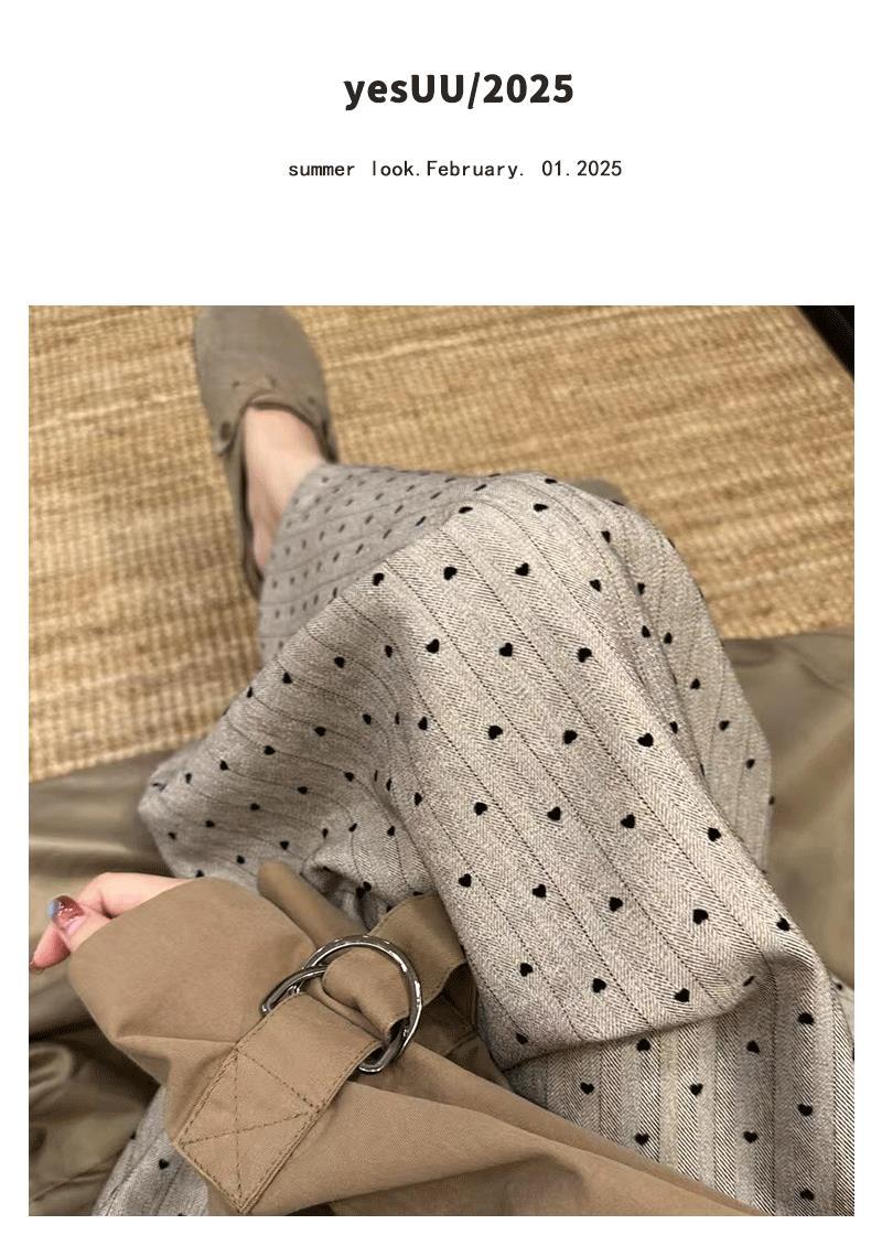 爱心波点休闲裤女宽松卡其色阔腿裤高级感2025新款慵懒松弛感裤子
