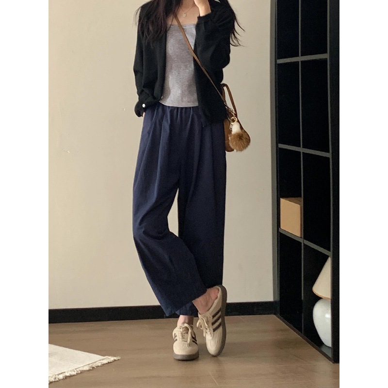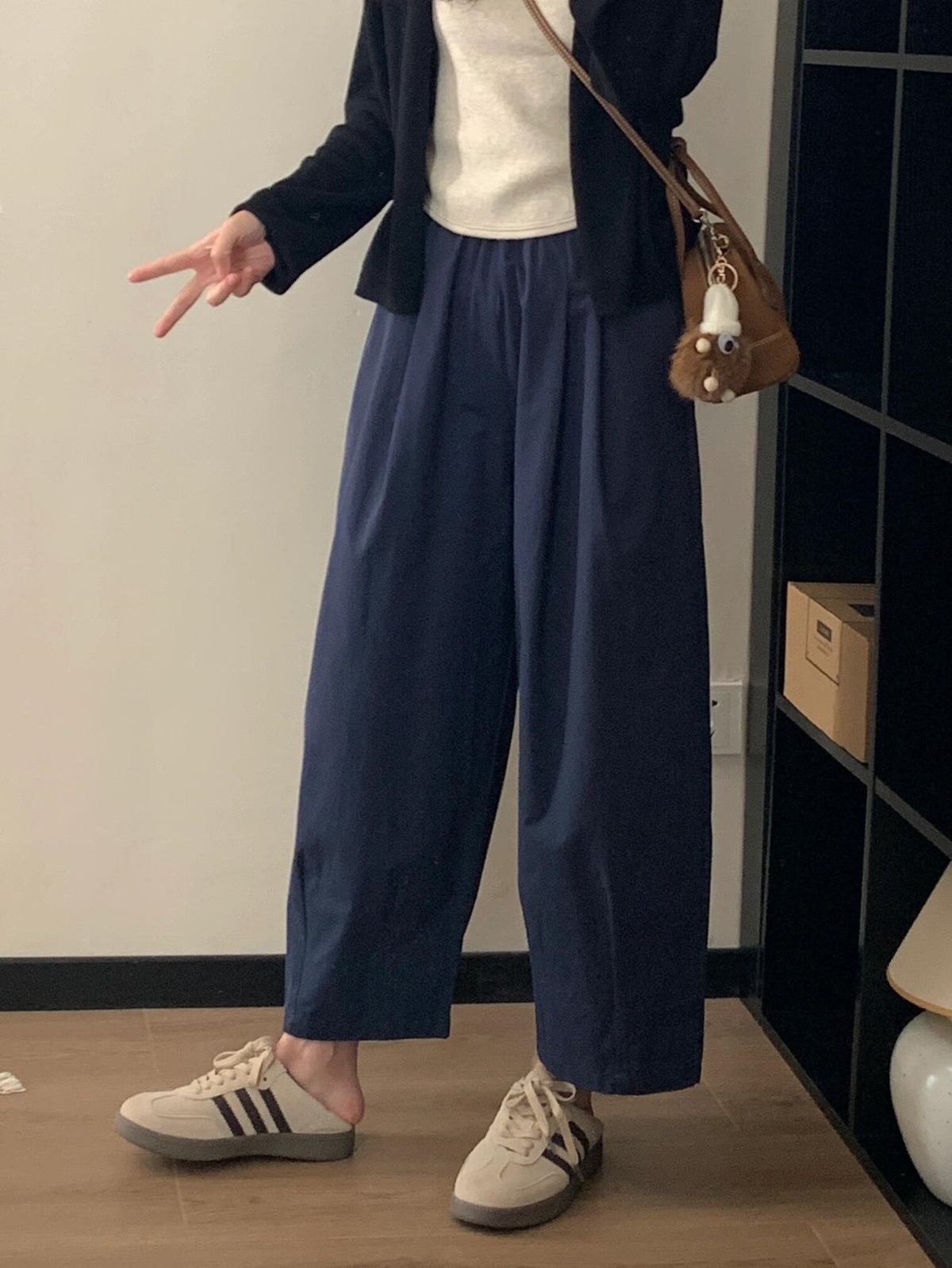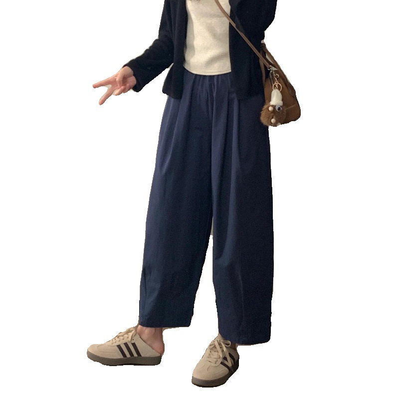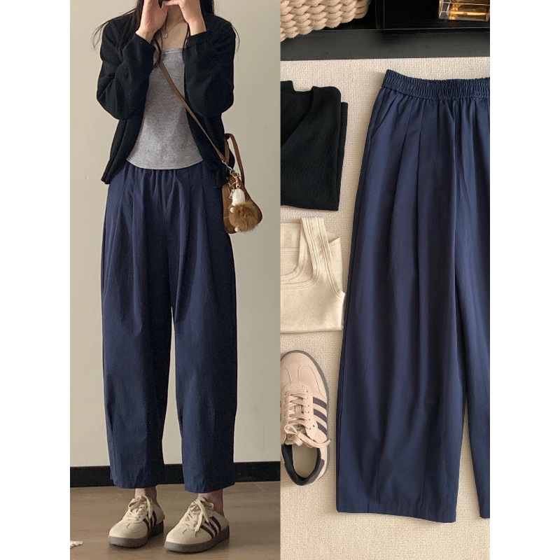 大码九分阔腿休闲裤女春季新款胖mm梨形身材松紧腰萝卜奶奶哈伦裤