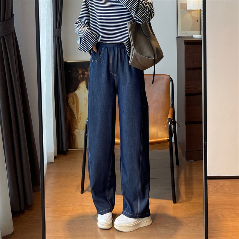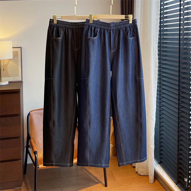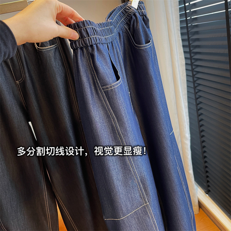 慵懒老钱感的牛仔风tr弯刀茧型阔腿裤,