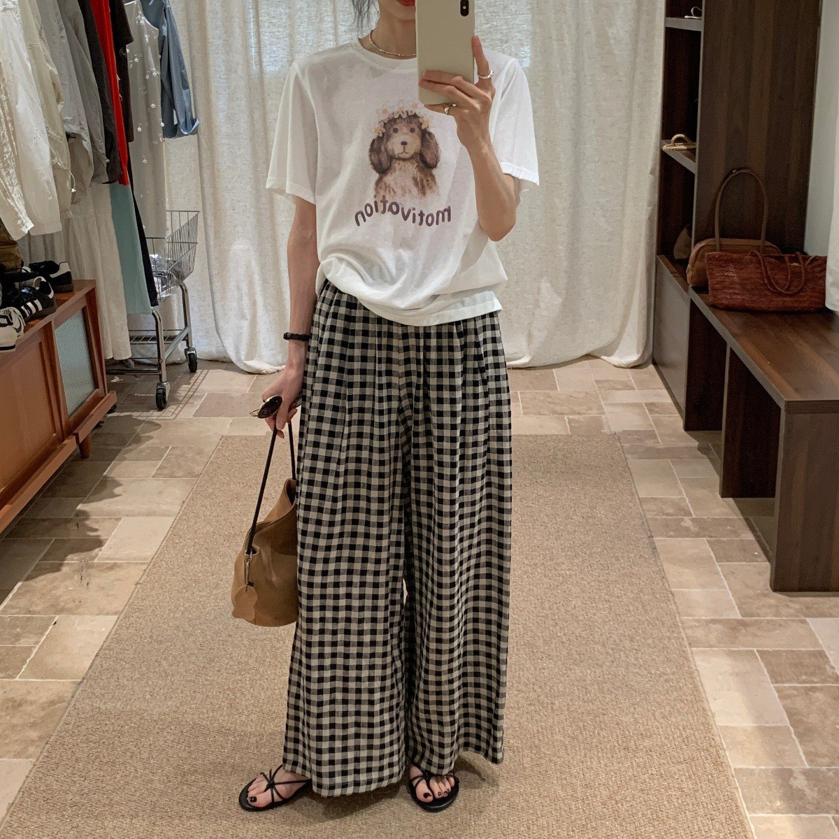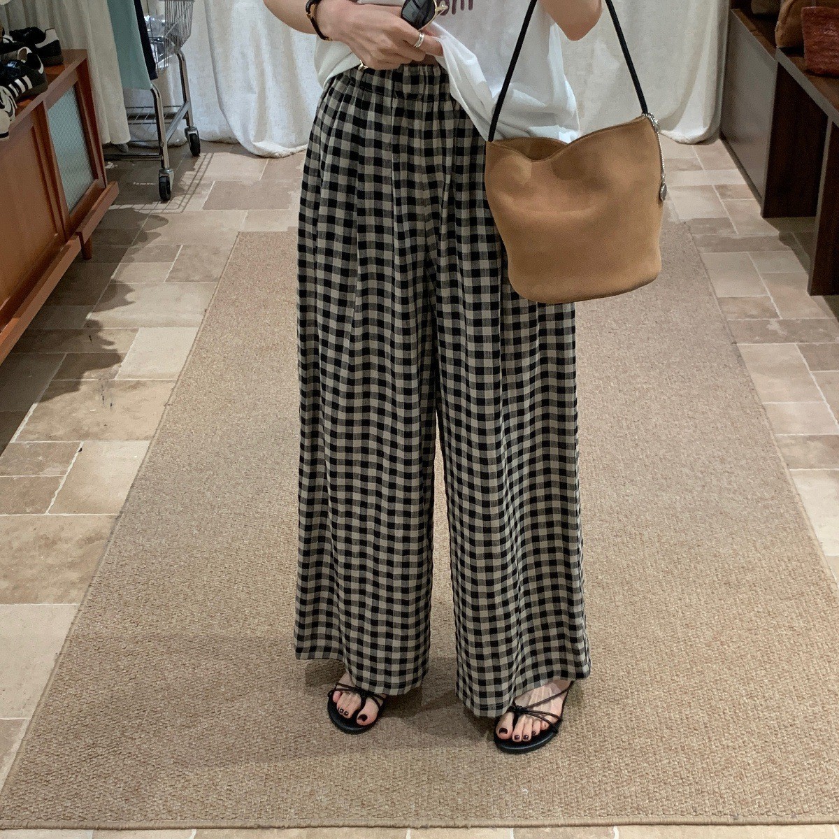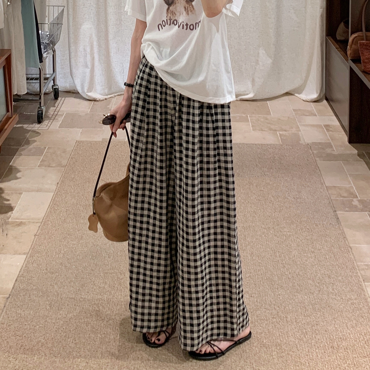 BRIVIN韩系复古格子休闲裤女2025夏季新款宽松显瘦百搭直筒长裤