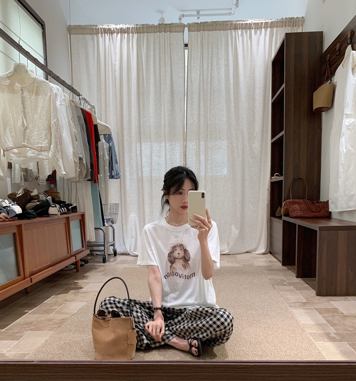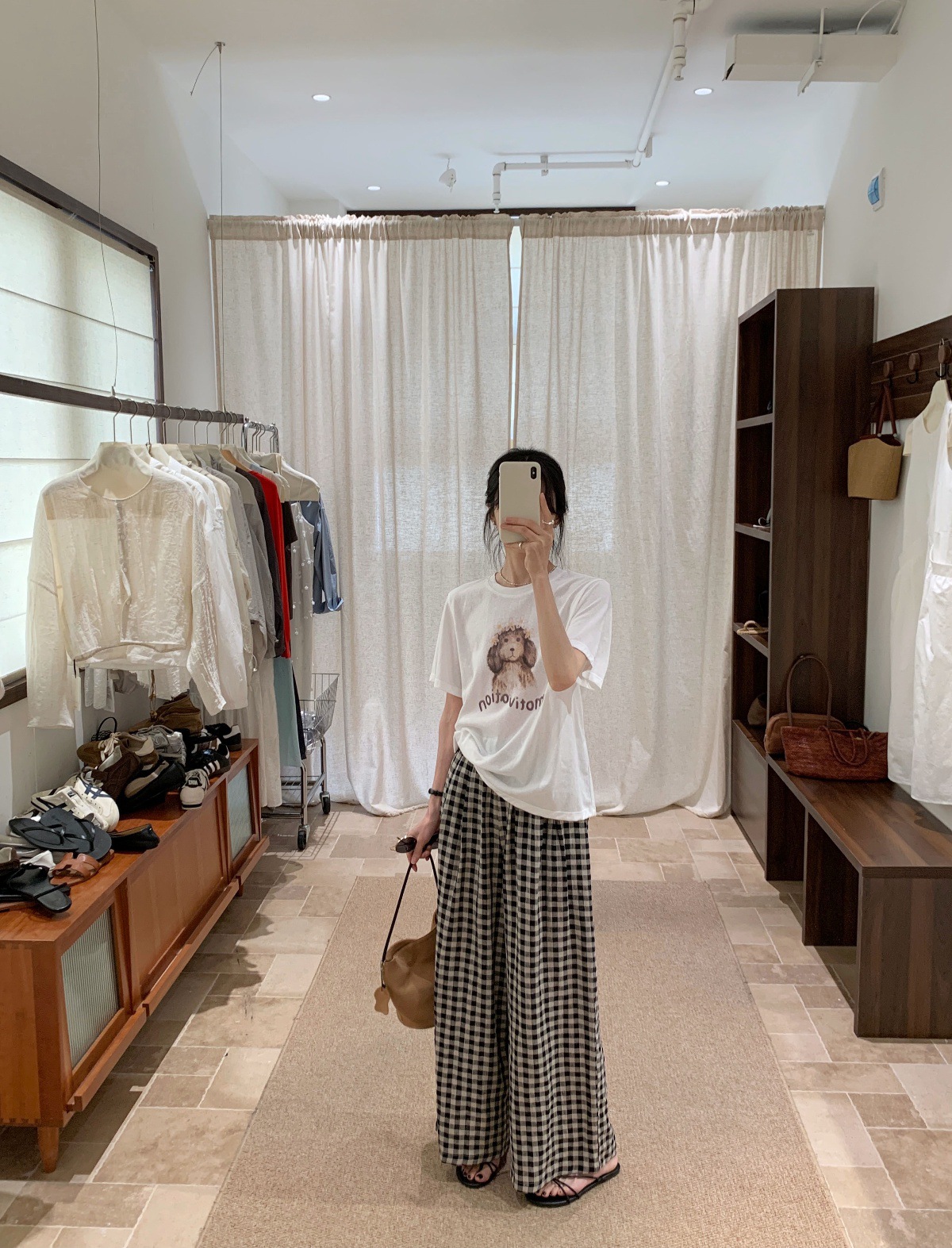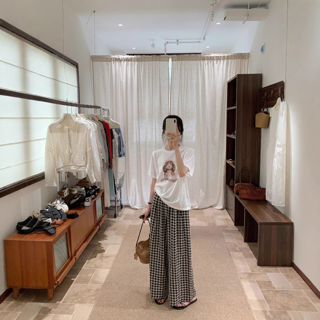 BRIVIN韩系复古格子休闲裤女2025夏季新款宽松显瘦百搭直筒长裤