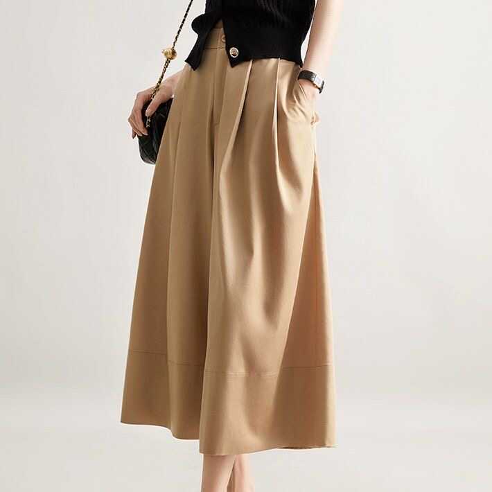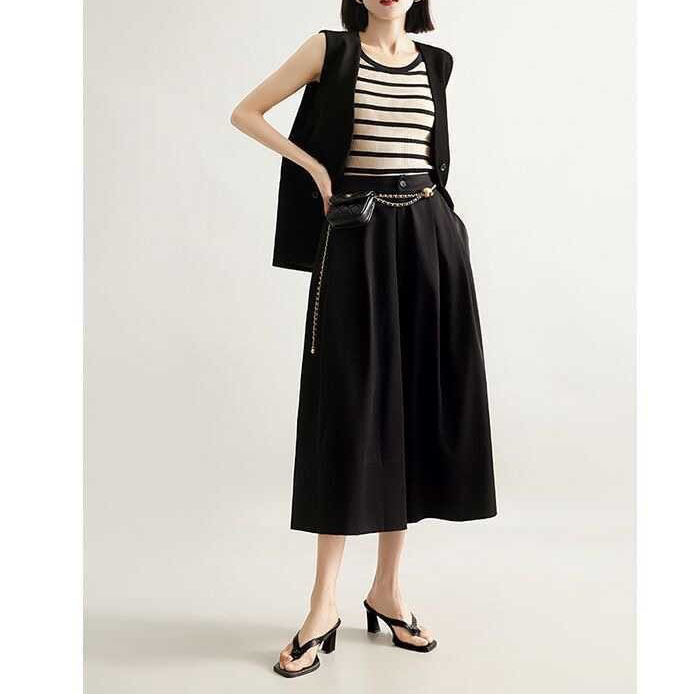2025春季高腰大摆阔腿裙裤松弛感新款女装宽松显瘦遮肉时髦九分裤