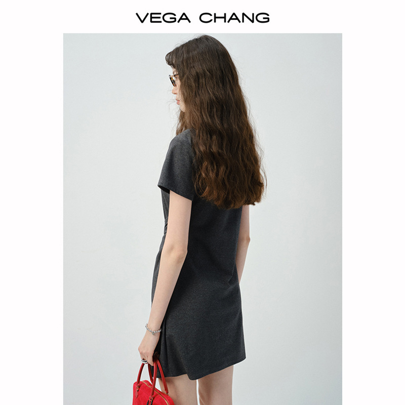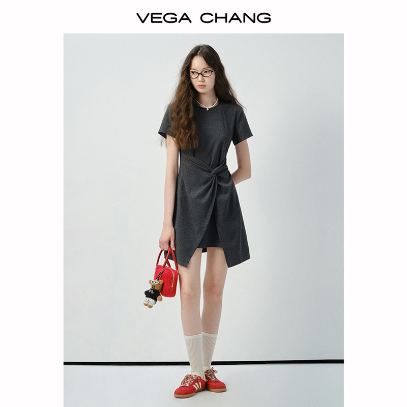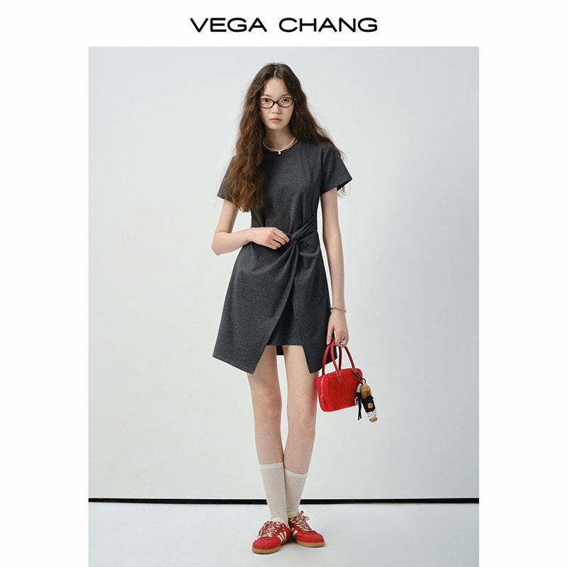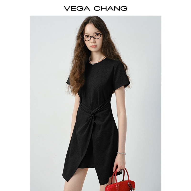 VEGA CHANG小个子连衣裙女2025新款夏装不规则裙摆显瘦t恤短裙子