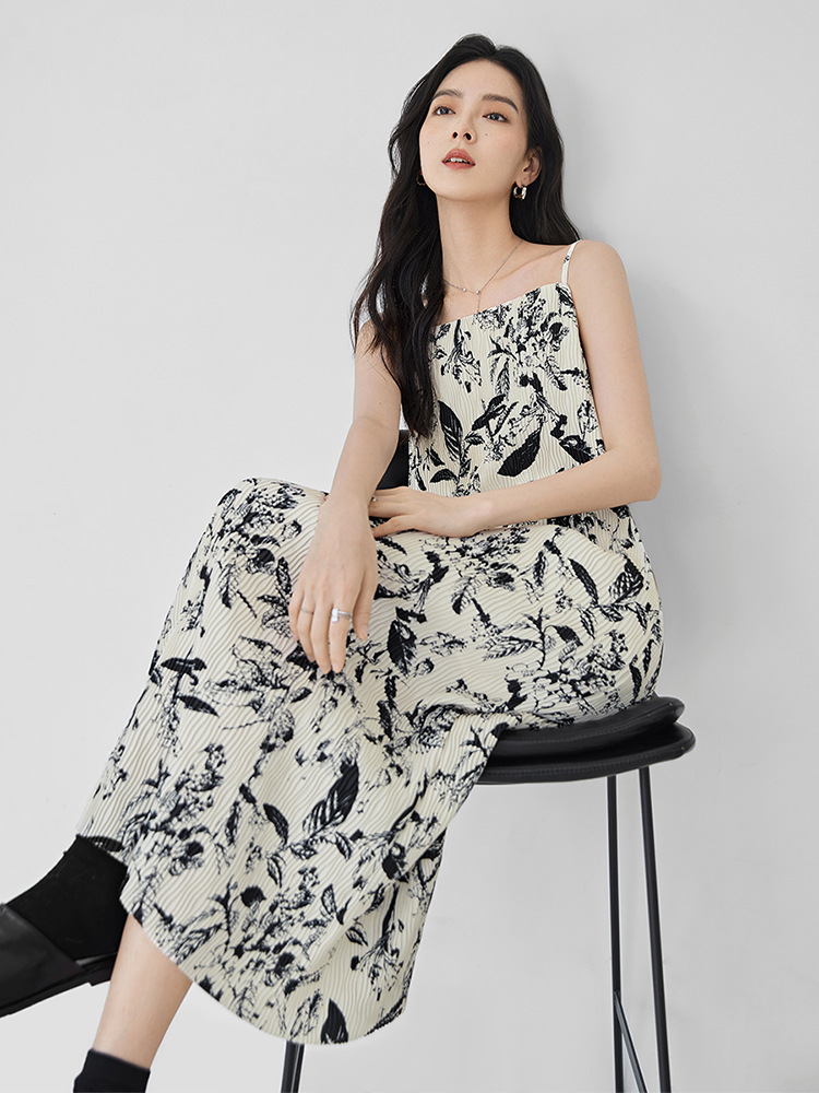 艺术画作联名浪漫碎花吊带连衣裙女2025春新款法式高级感裙子