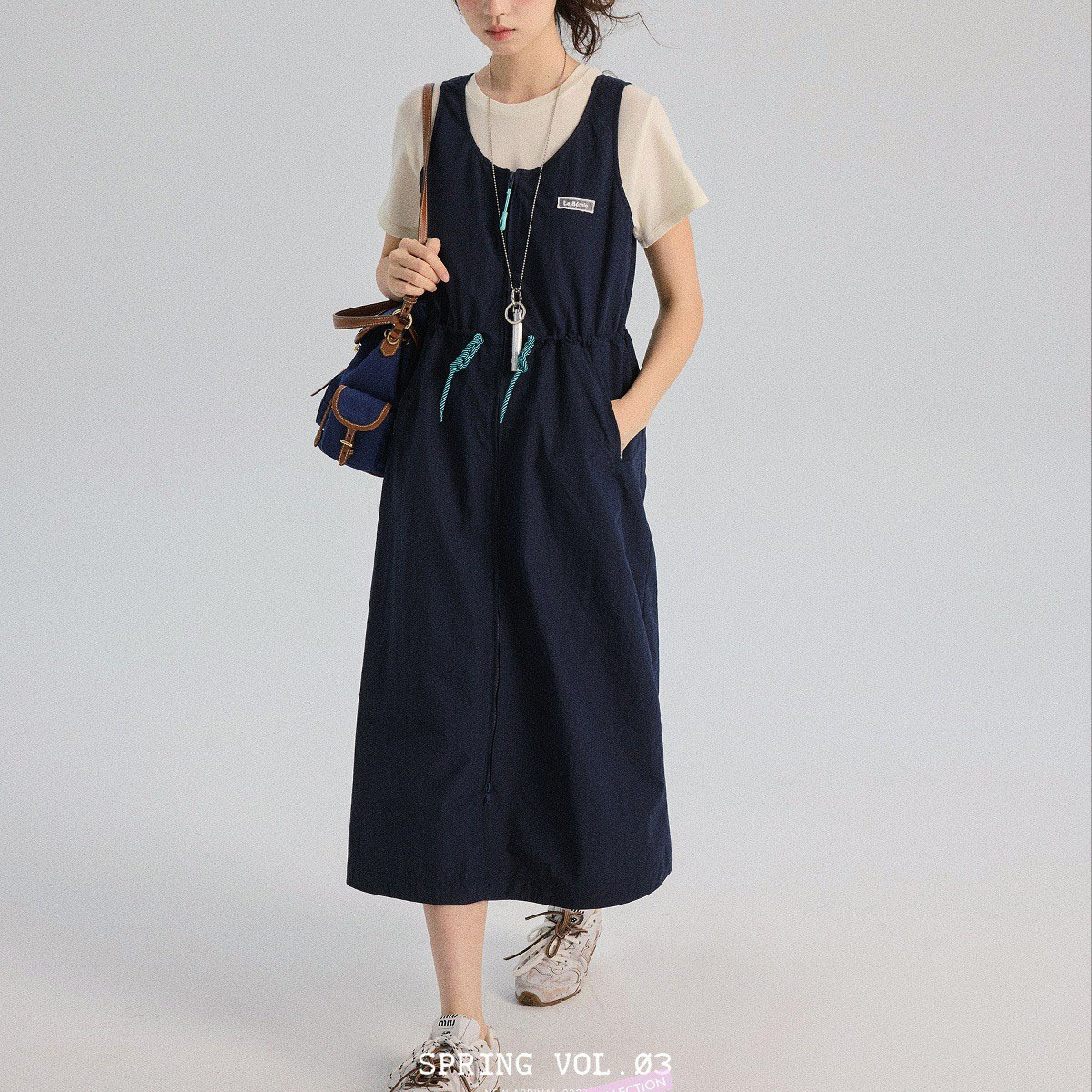 「白描工作间」'蓝港利斯'户外运动感a字U领长款/短款背心连衣裙