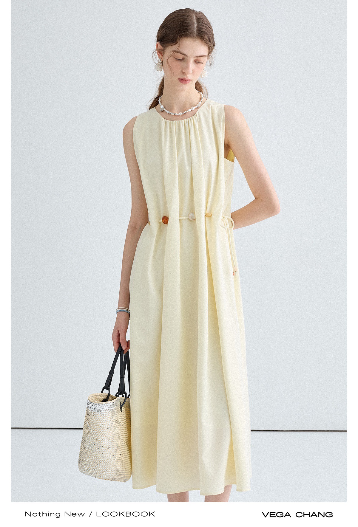 连衣裙女2025年夏季新款腰绳设计高级感圆领显瘦背心裙