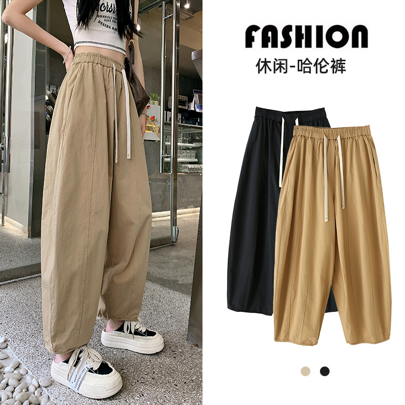 韩系洗水棉休闲灯笼裤女新款宽松慵懒风舒适九分裤哈伦老爹裤