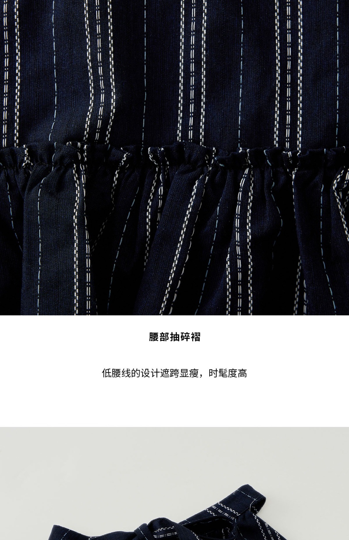 条纹绑带连衣裙女夏季新款收腰显瘦休闲开叉t恤长气质长裙子