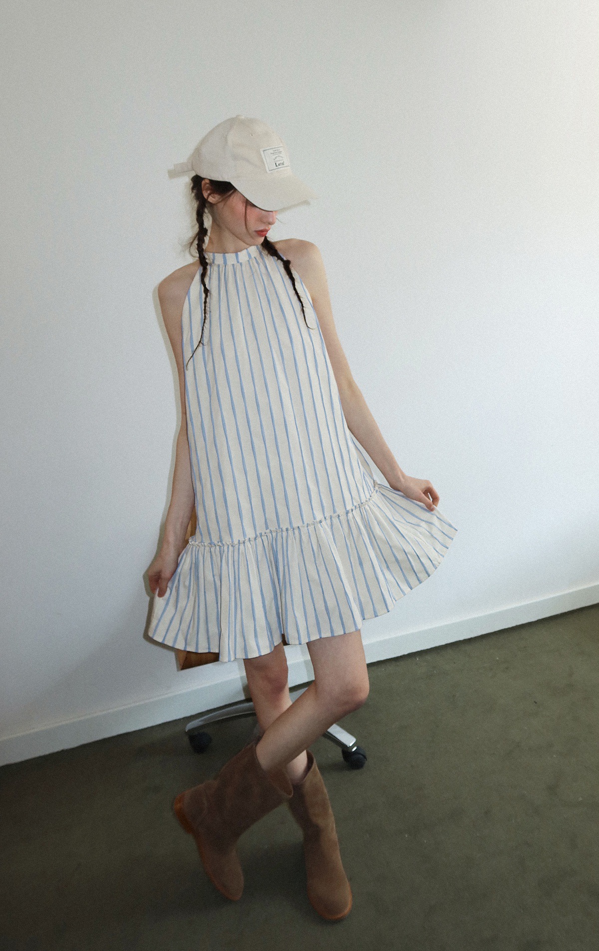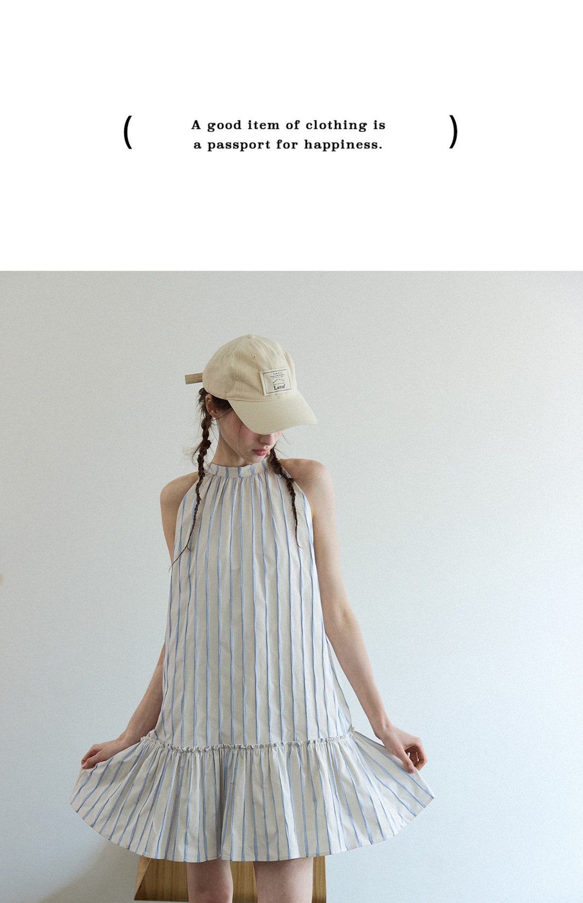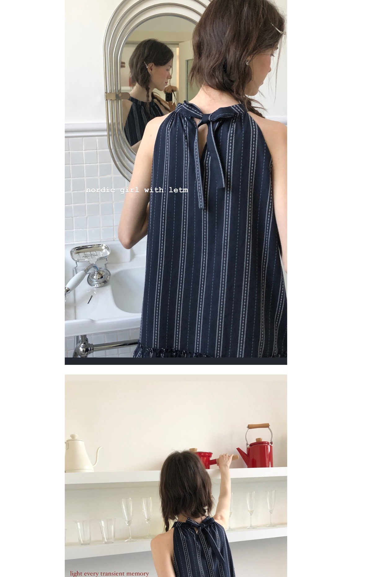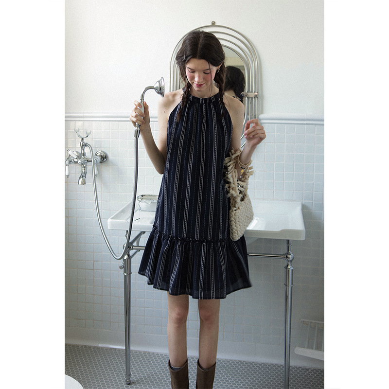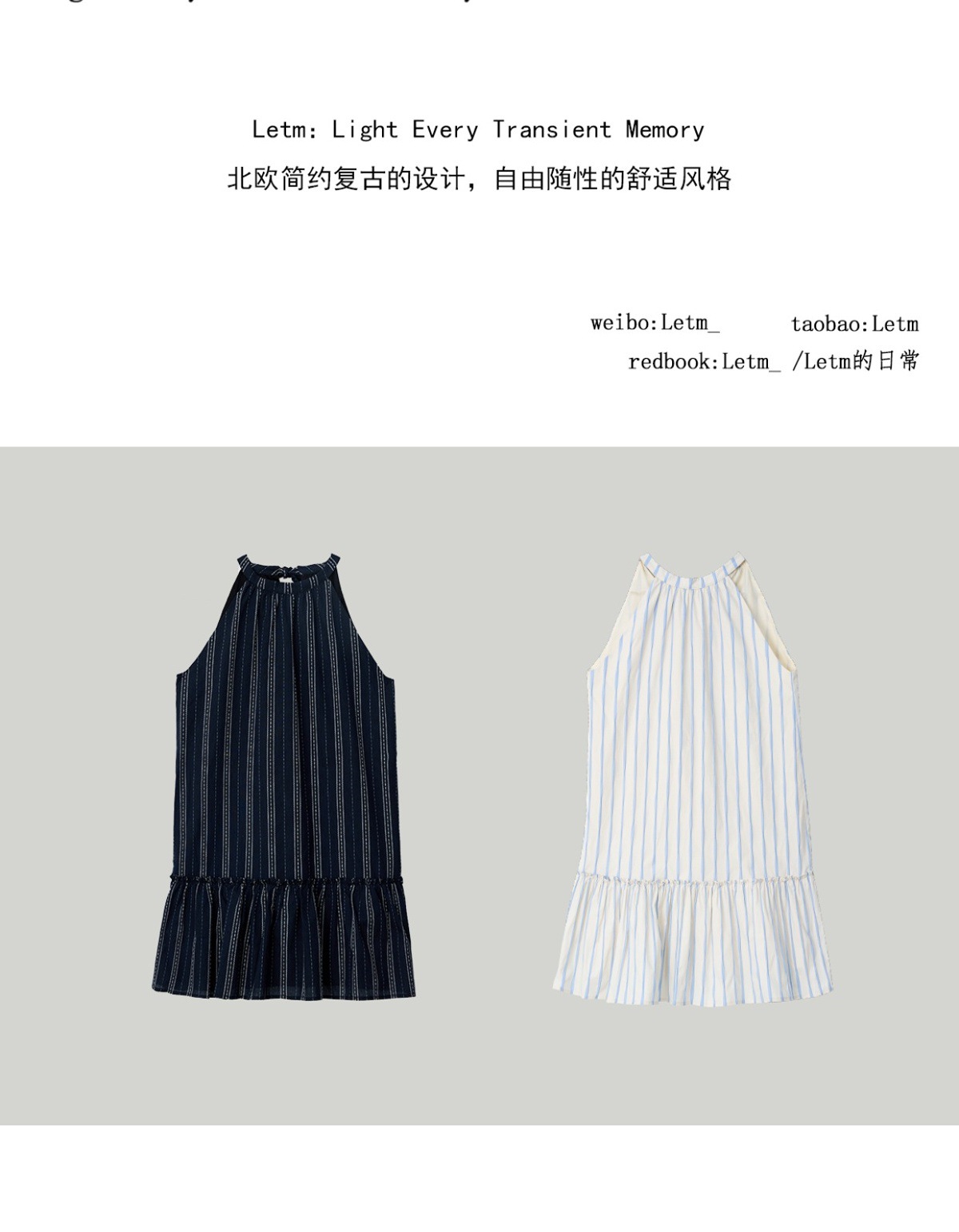 Letm薄雾的初夏清晨’复古挂脖蝴蝶结系带下摆荷叶边无袖连衣裙女