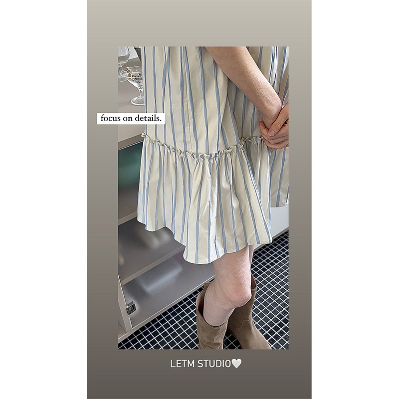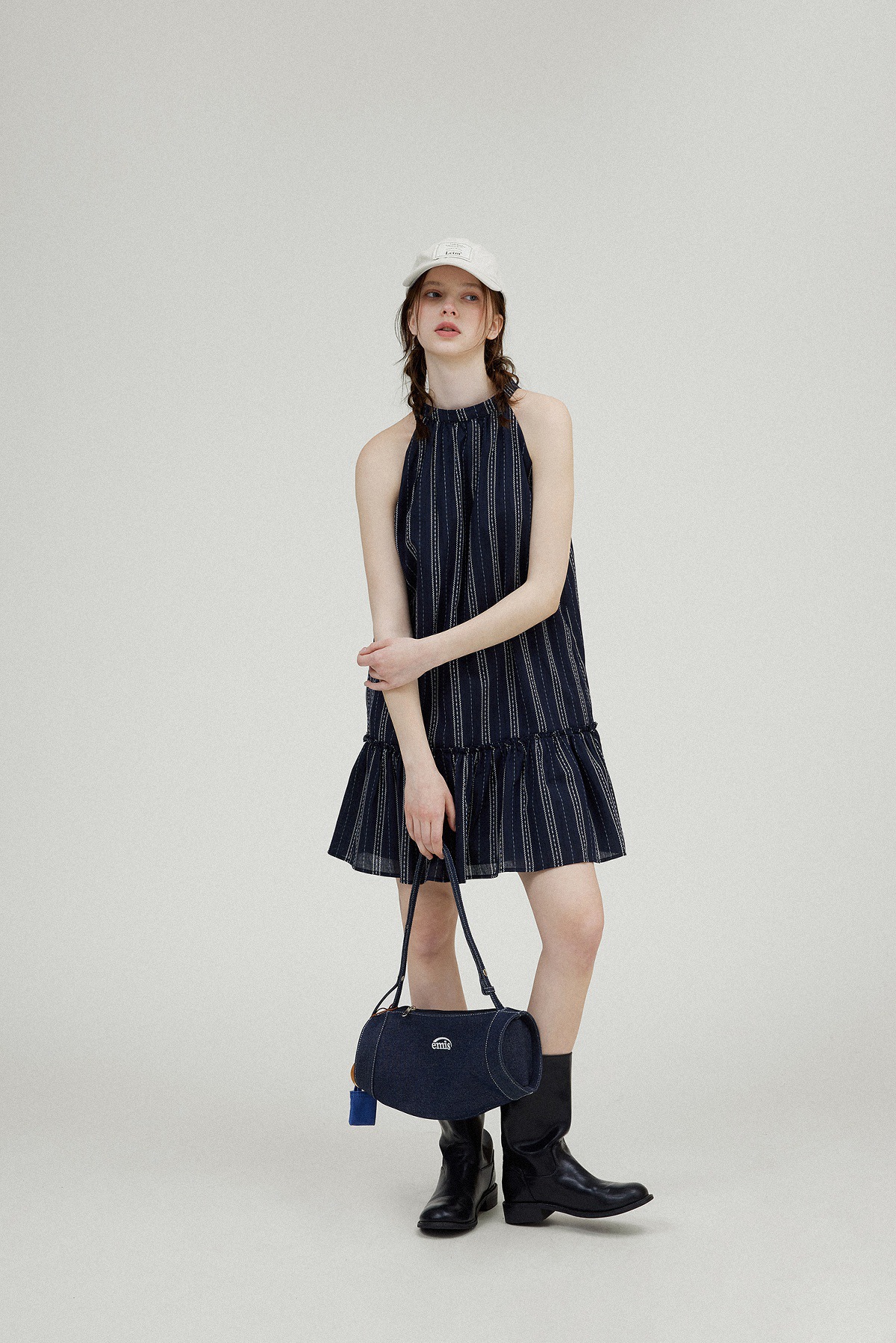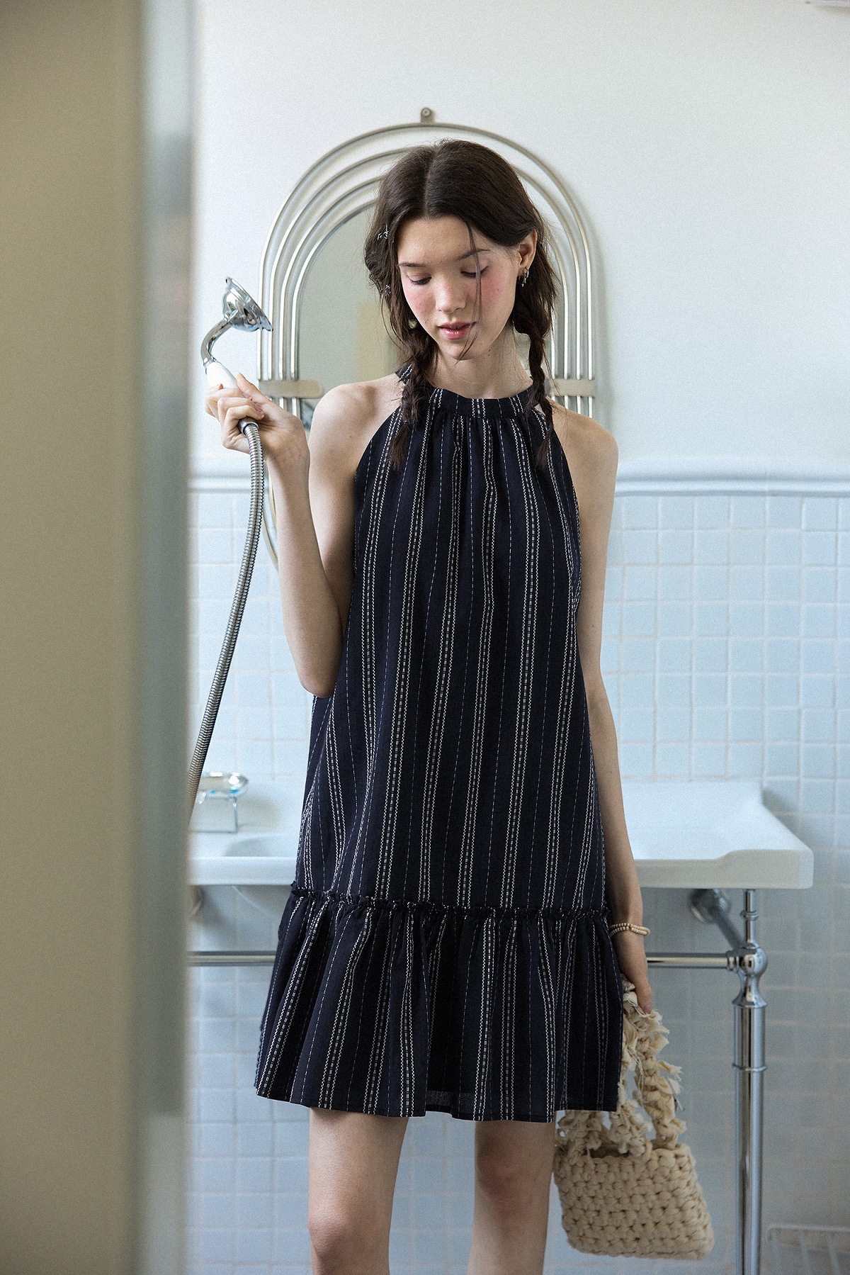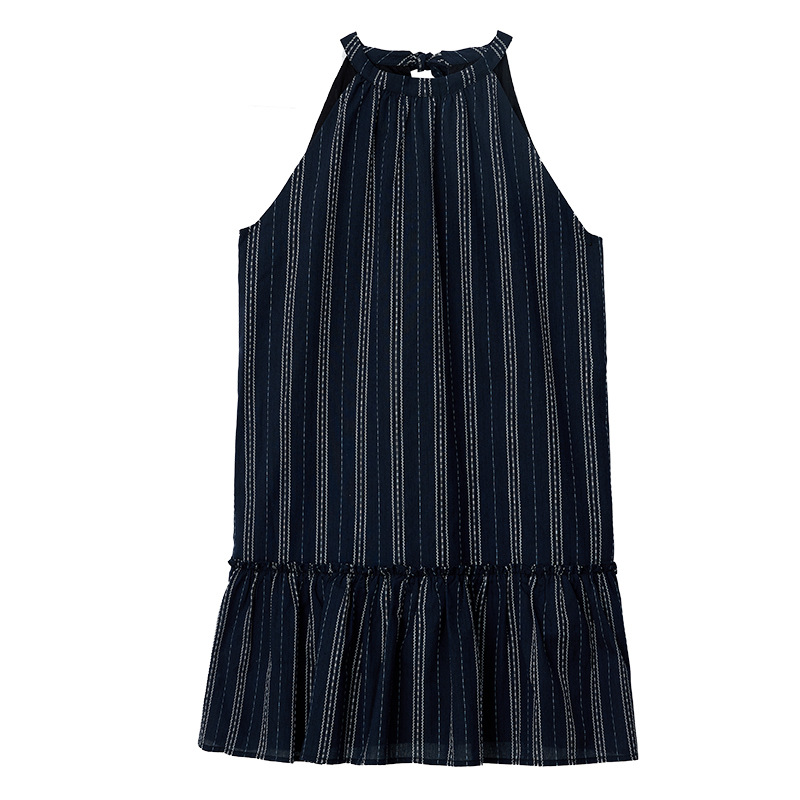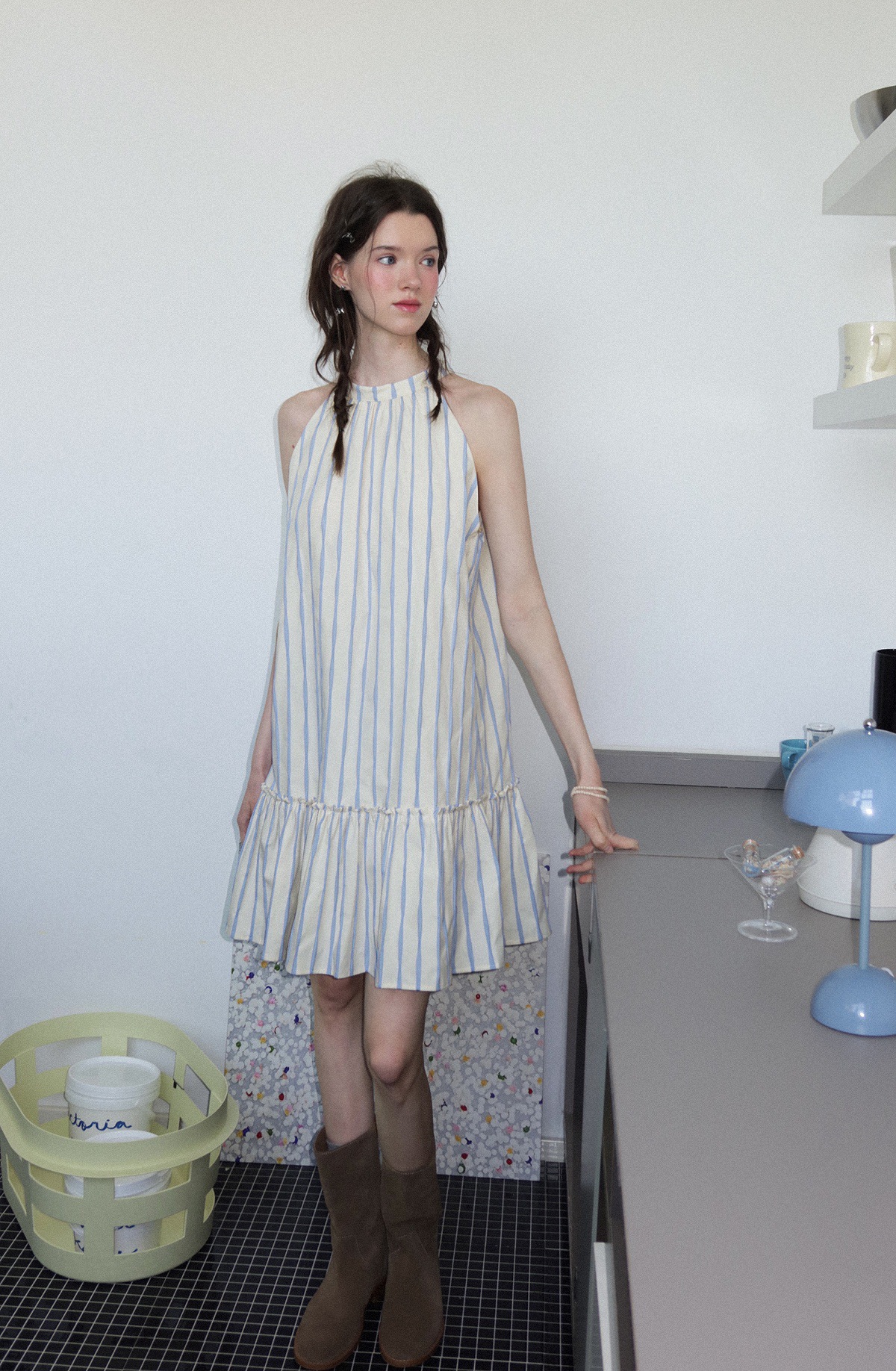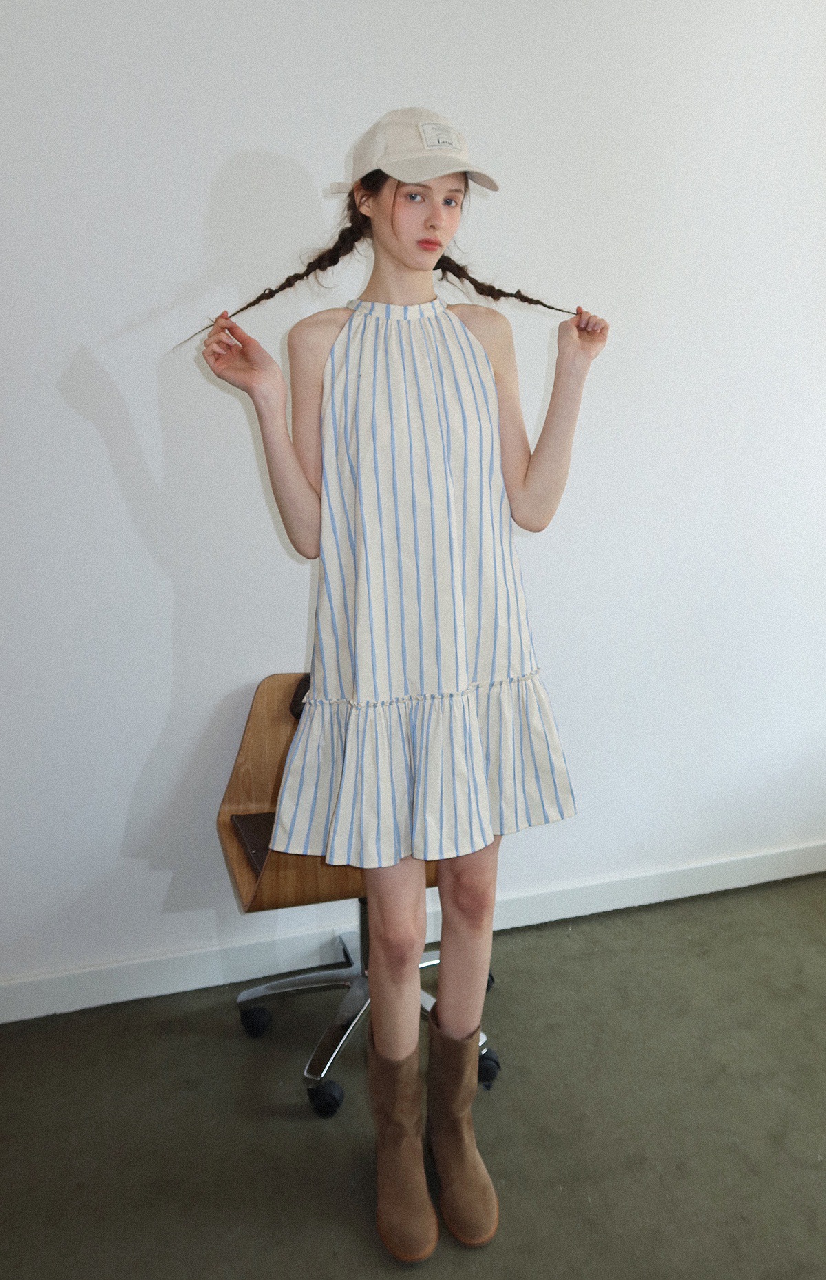 Letm薄雾的初夏清晨’复古挂脖蝴蝶结系带下摆荷叶边无袖连衣裙女