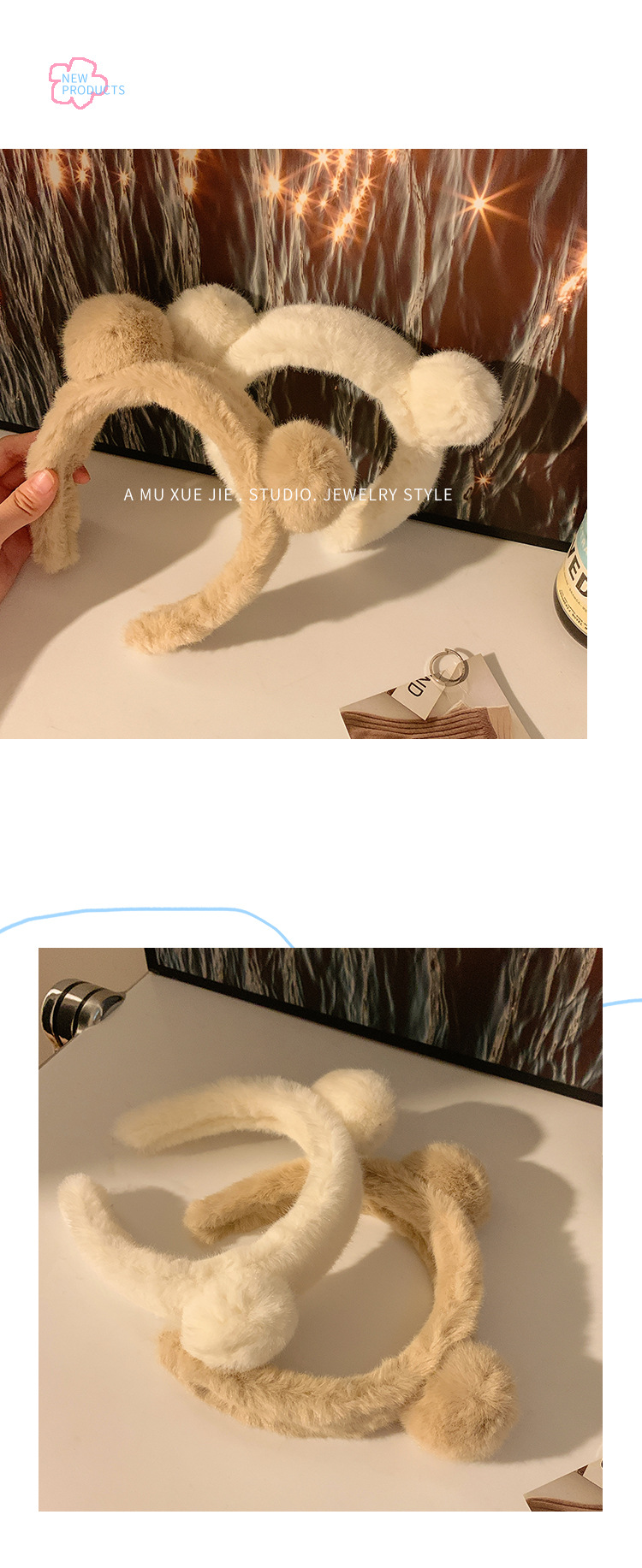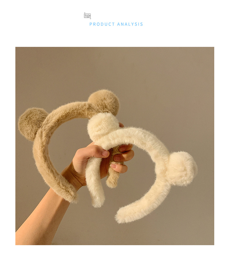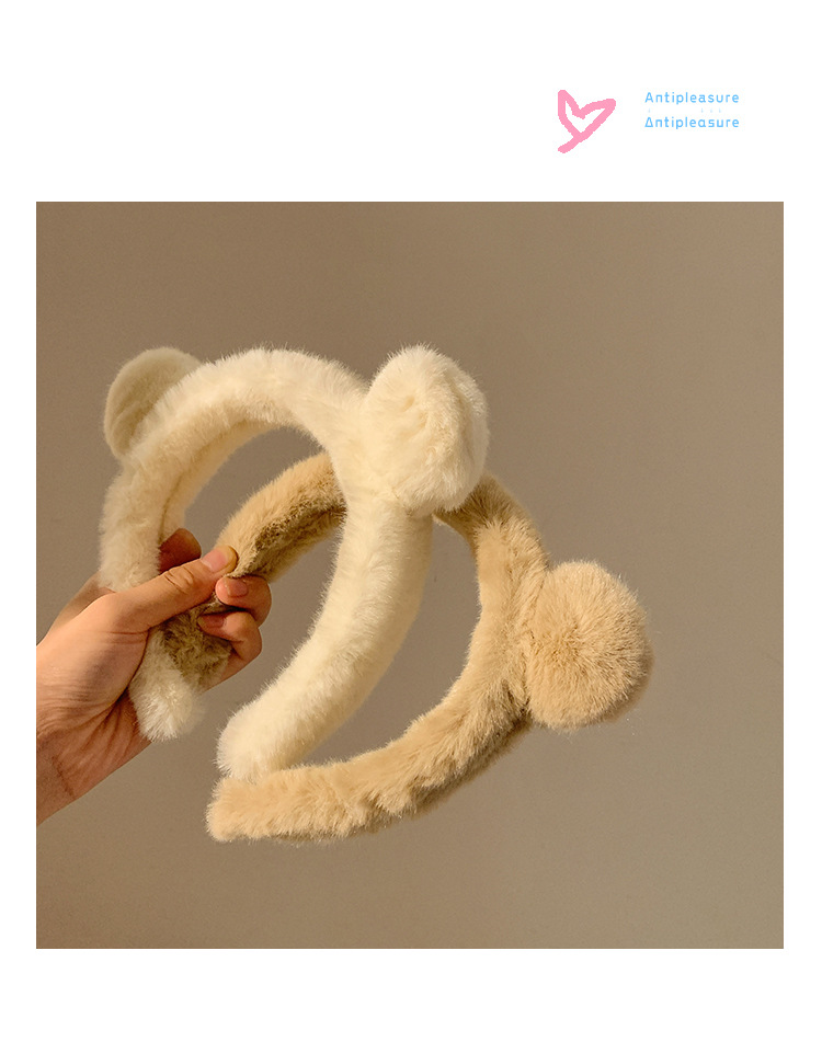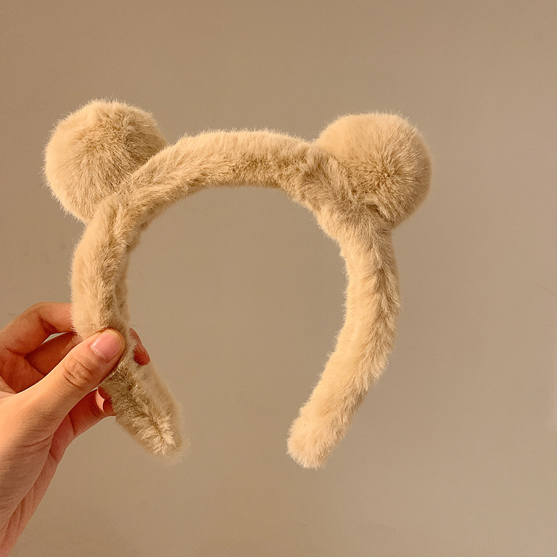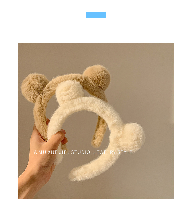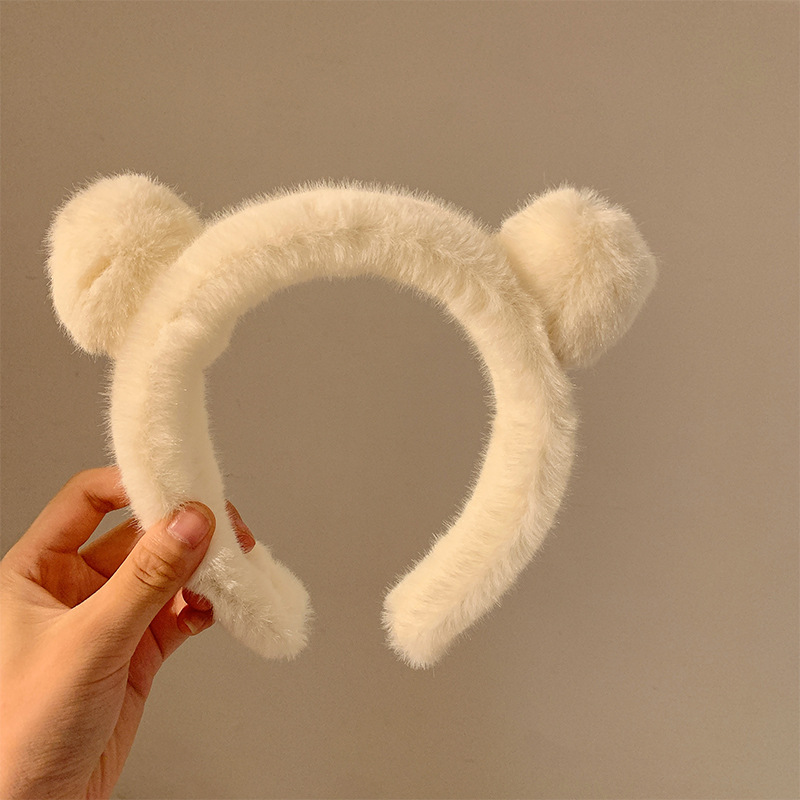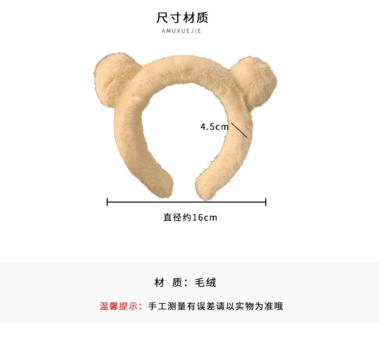可爱日系小熊耳朵毛绒发箍女秋冬白色毛毛洗脸专用防滑网红宽头箍