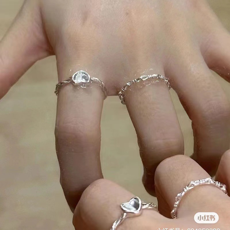 简约小众设计纯银实心爱心ins戒指女时尚个性食指可调节学生指环