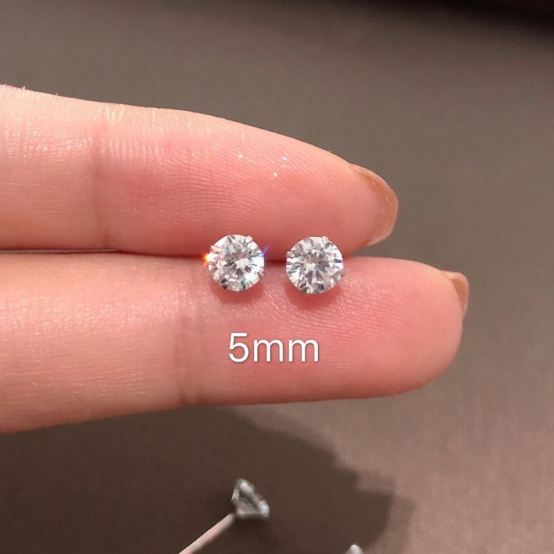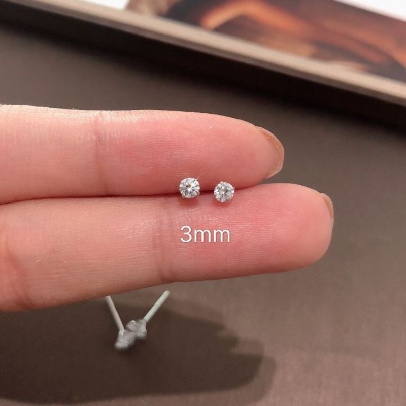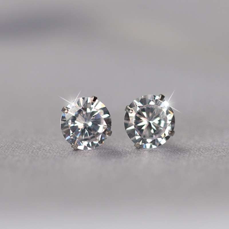s925四爪锆石耳钉 时尚礼品女跨境配饰闪钻圆水晶小饰品银耳饰