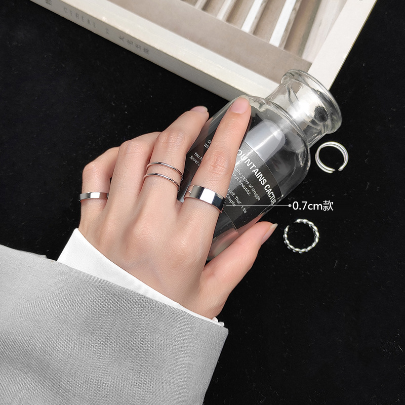 几何戒指韩版时尚简约光面指环组合搭配开口麻花食指戒一件代发