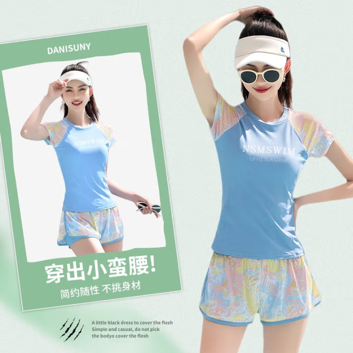 泳衣女泡温泉保守分体遮肚显瘦两件套新款沙滩度假学生泳装