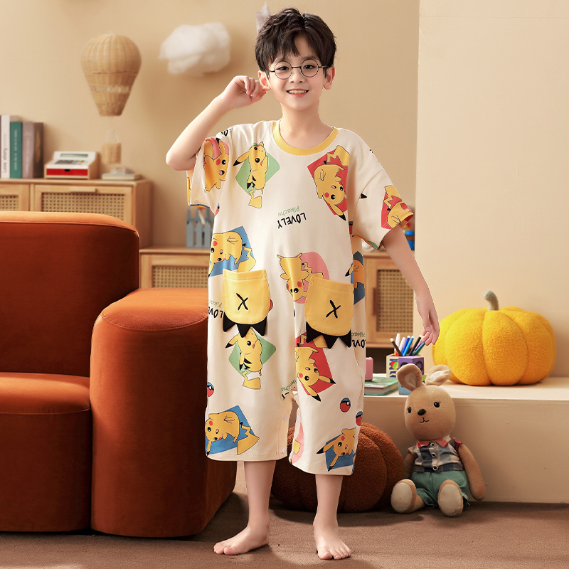 男童连体睡衣夏季纯棉短袖连体衣防踢遮肚卡通小孩儿童空调家居服