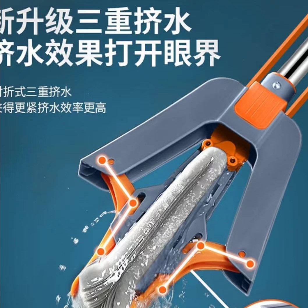 滚轮式胶棉拖把海绵拖把免手洗加厚对折胶棉拖把拖把家用挤水
