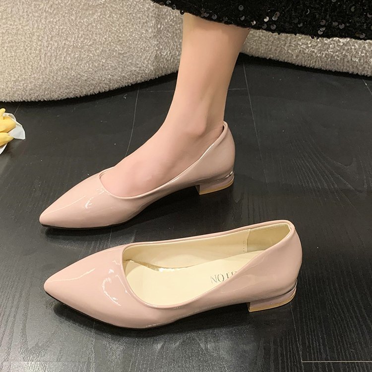 夏季新款大码尖头单鞋女糖果色粗跟浅口漆皮低跟女鞋