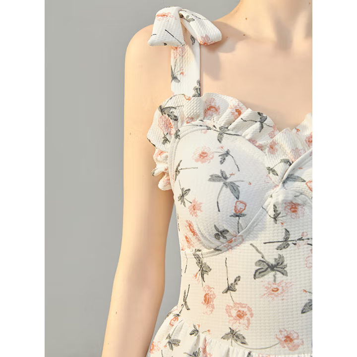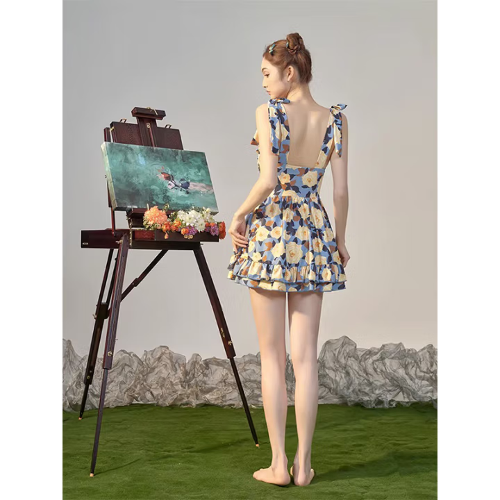 女连体泡温泉保守网红风微胖女孩遮肉海边沙滩度假泳装