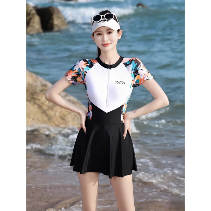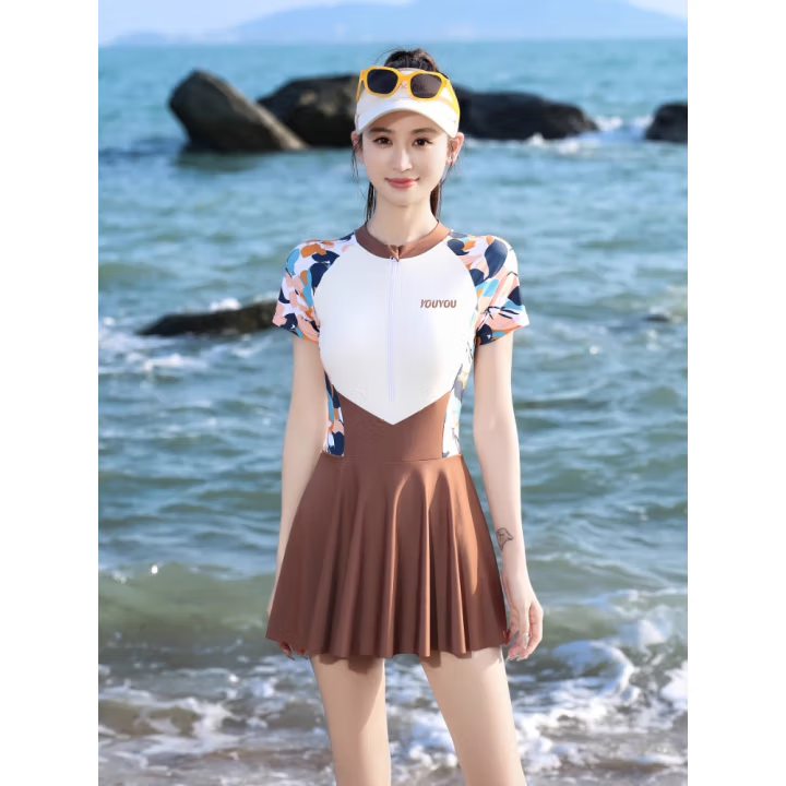 泳衣女士保守连体裙式遮肚显瘦大码温泉游泳装三件套