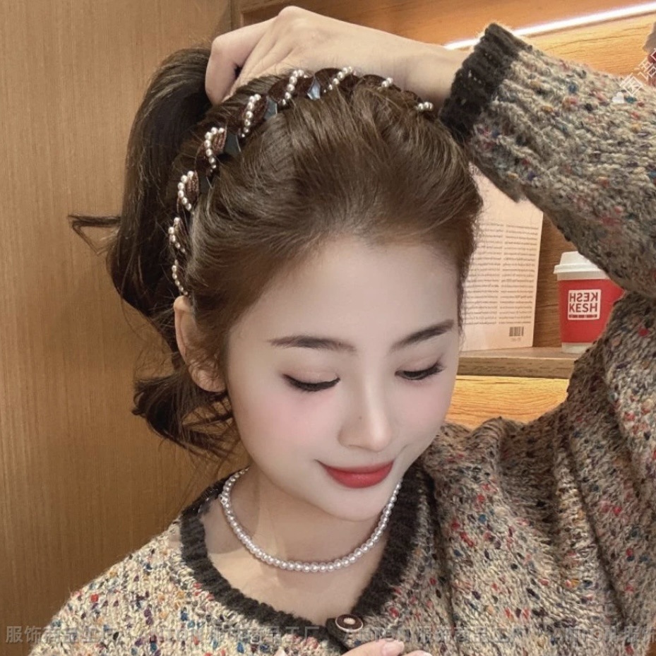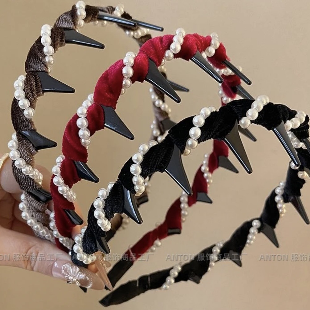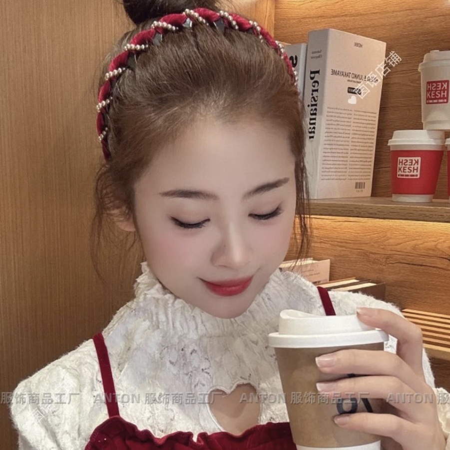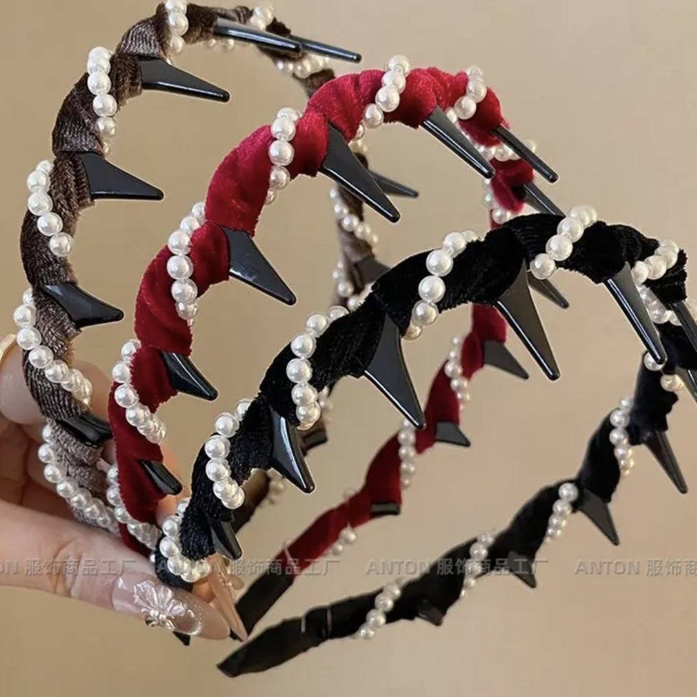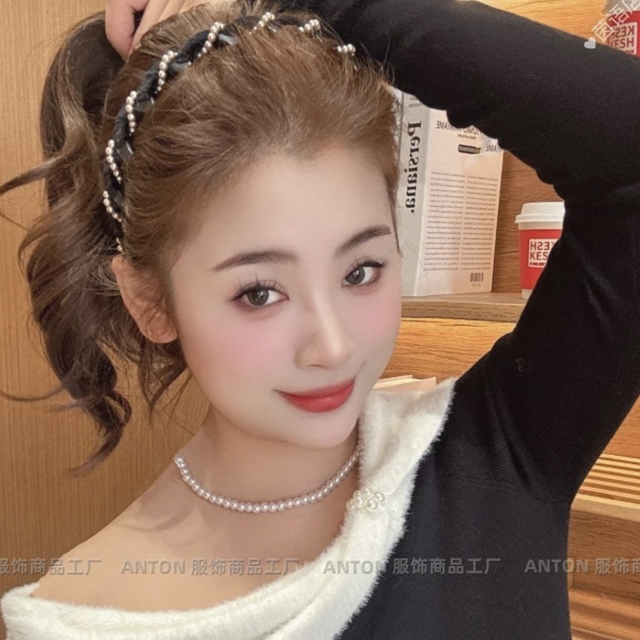 高颅顶发箍复古波浪珠珠女款秋冬洗脸不勒头发卡带齿防滑蓬松头箍