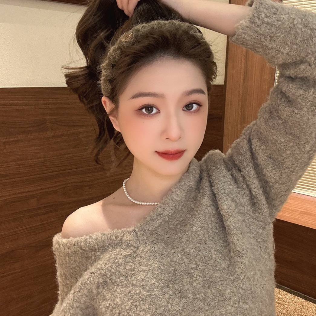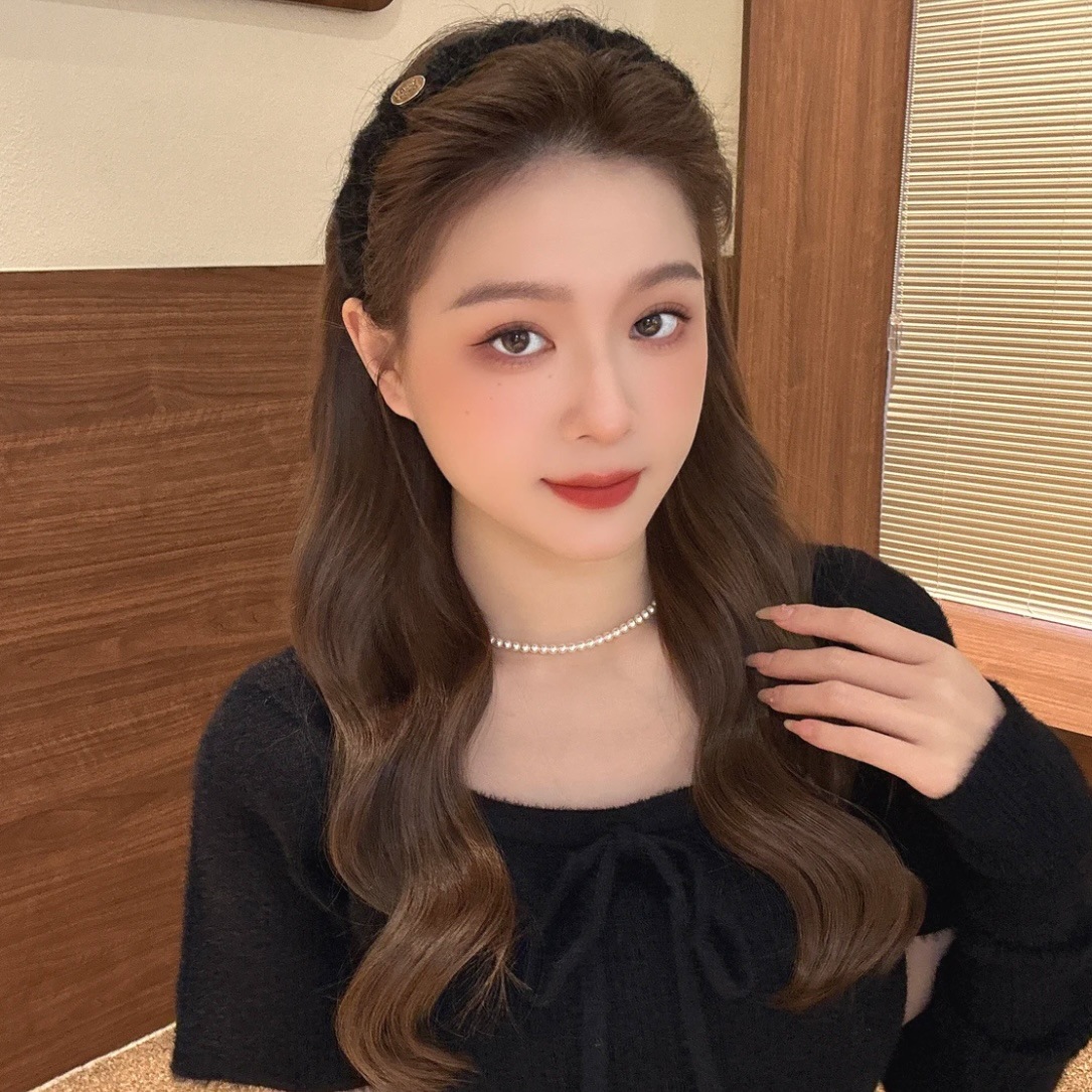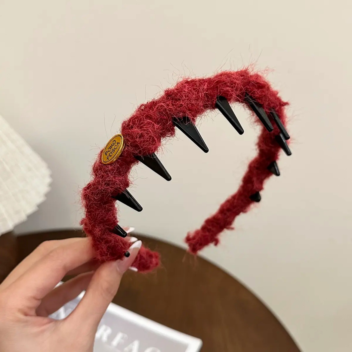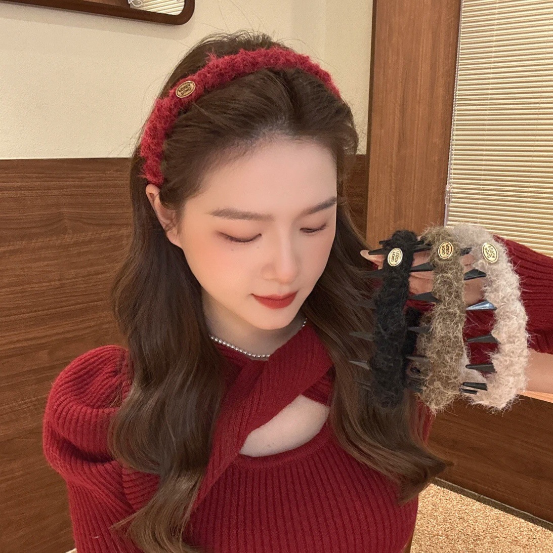 圣诞新年红色毛线金标波浪发气质温柔压发卡高颅顶带齿防滑头箍