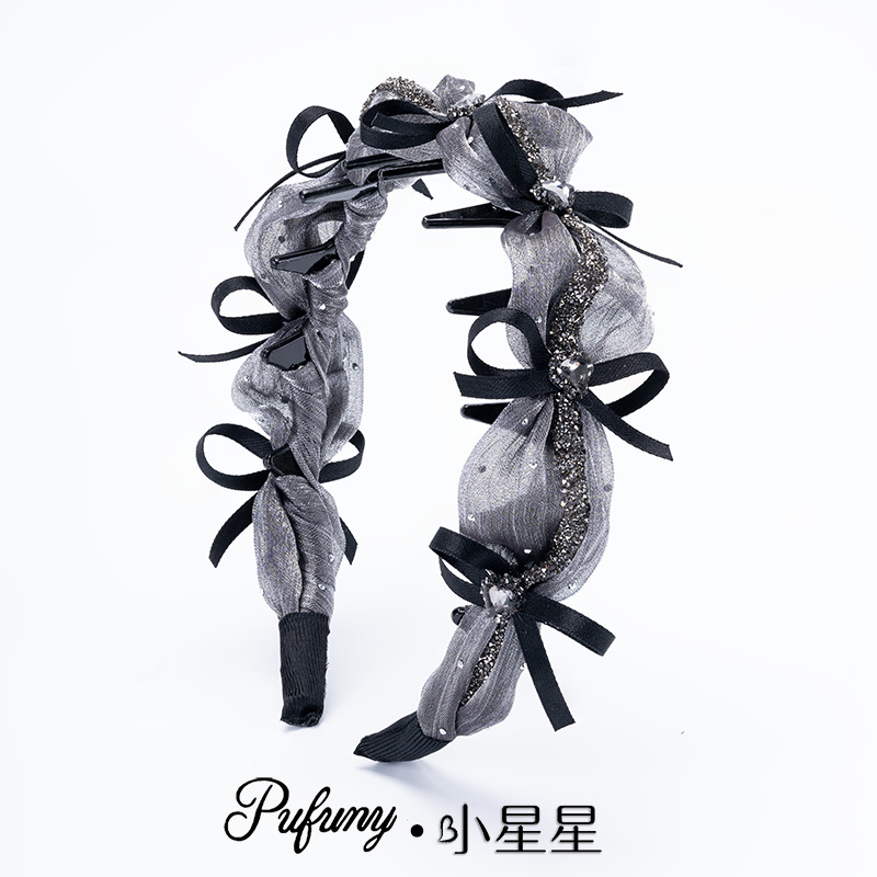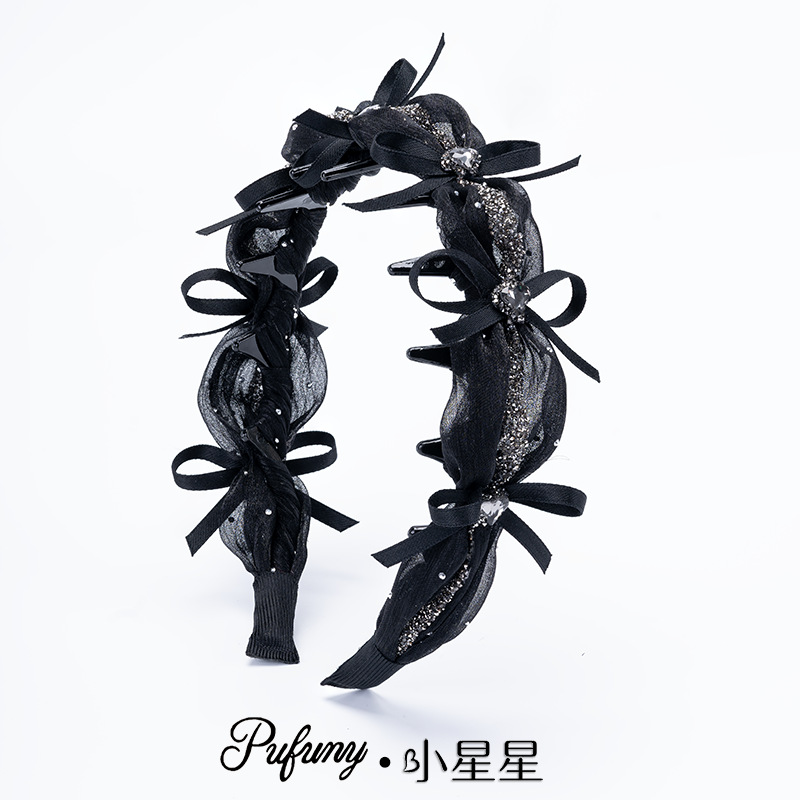 网纱双色蝴蝶结发箍黑色
