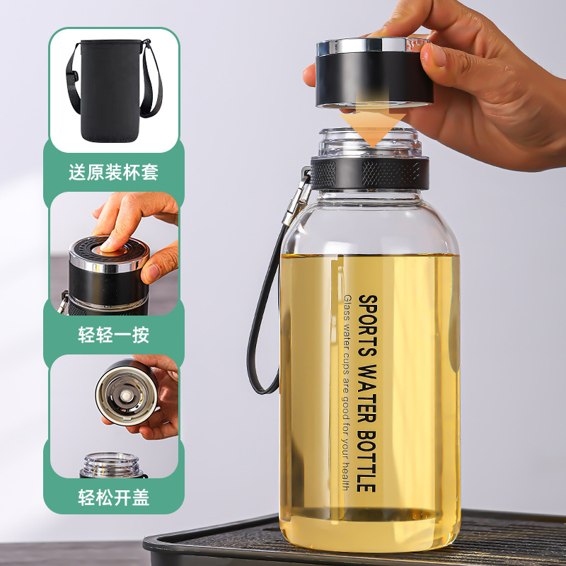 速开吨吨杯高硼硅玻璃斜跨杯套大容量运动水壶一键开盖茶水分离杯