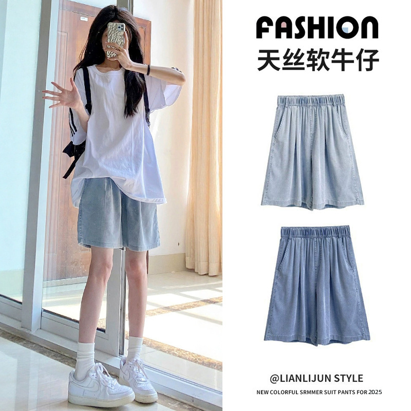 天丝牛仔短裤女夏季薄款2025新款高腰显瘦阔腿休闲小个子五分中裤