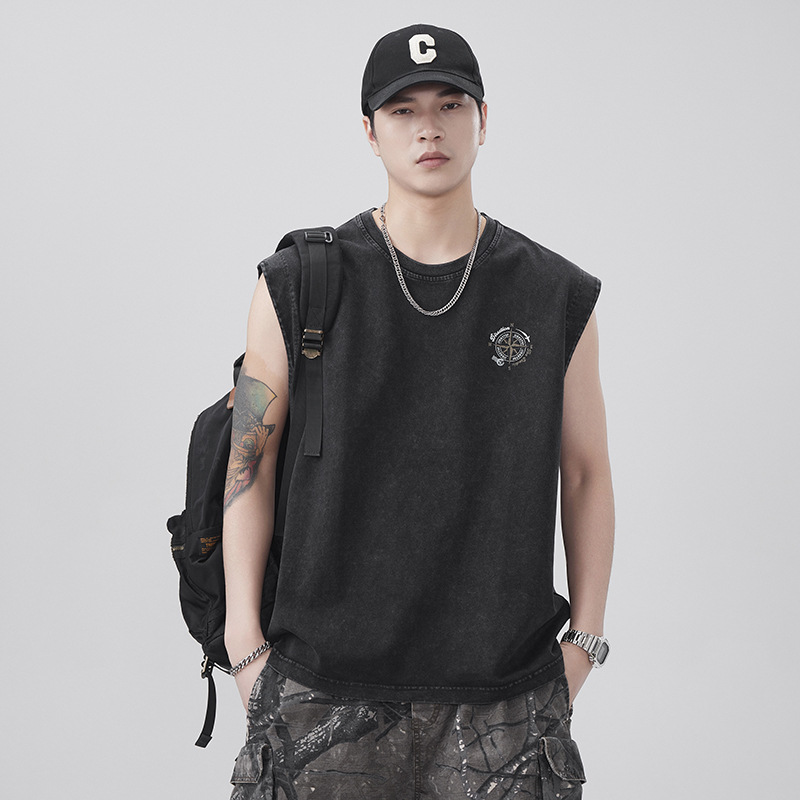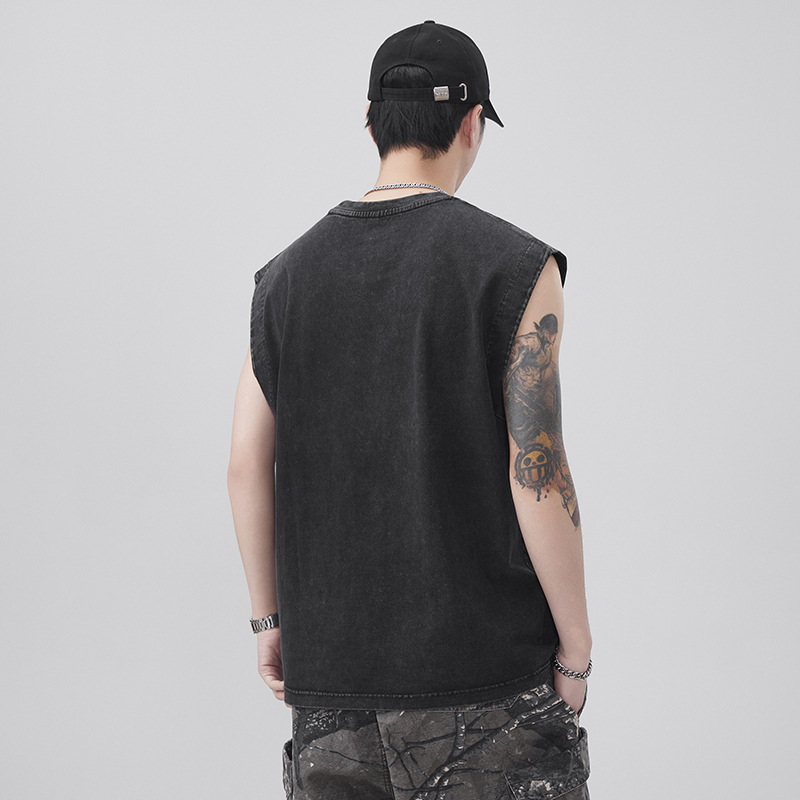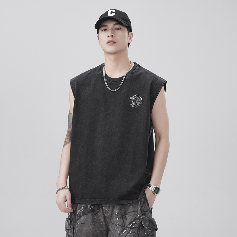 夏季薄款运动背心男宽松印花街头ins潮牌无袖t恤美式坎肩马甲