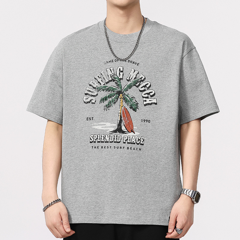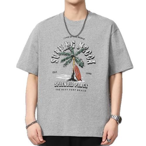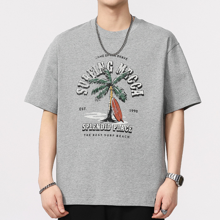 夏季新款美式复古短袖T恤男潮流圆领花灰夏日印花设计感半袖体恤